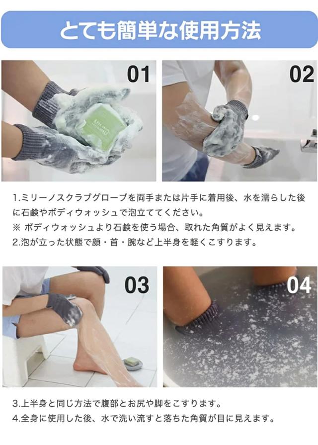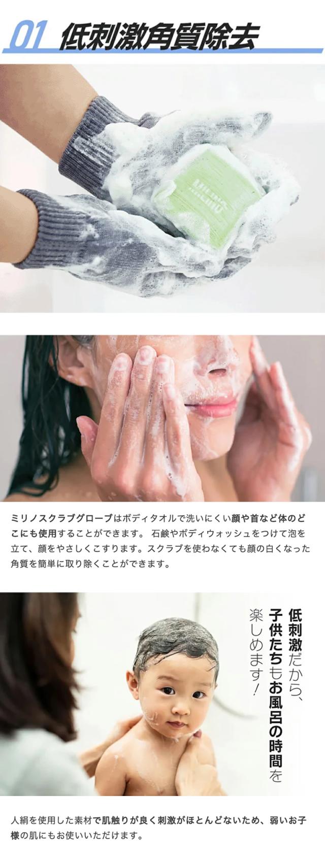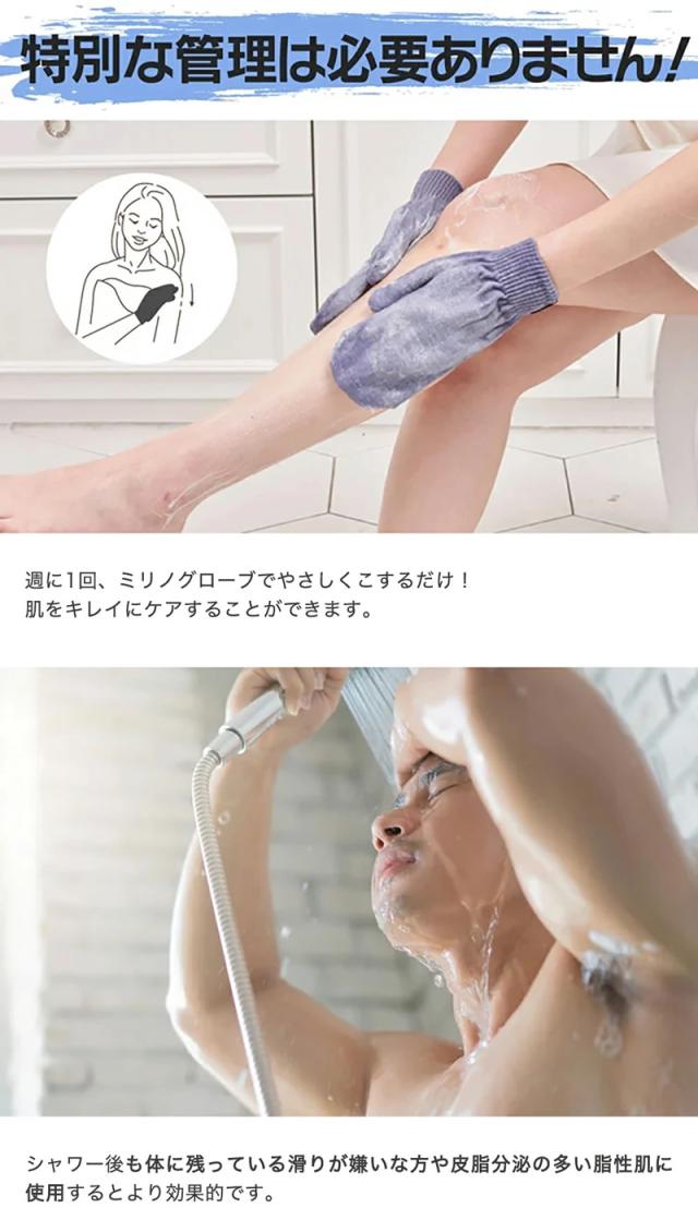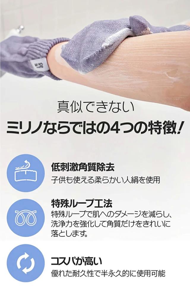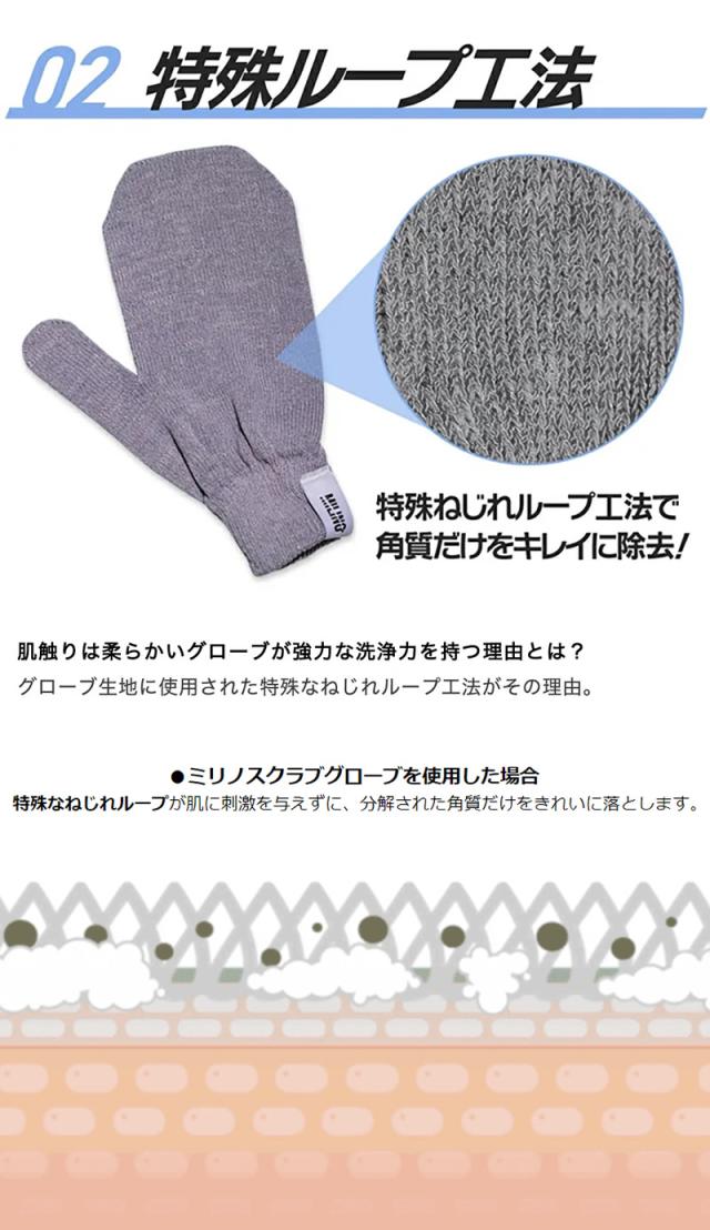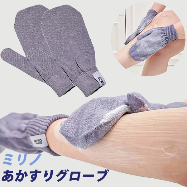 ミリノ あかすりグローブ (メール便送料無料) 垢すり タオル 角質 汚れ お風呂 美容 バスグッズ あかすり 低刺激 グローブ かかと 二の腕 MILINO