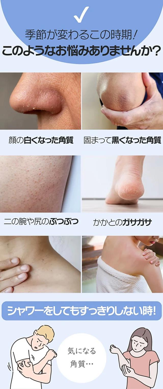 体を軽くこするだけでご覧のように、体についた油や角質をきれいに落とします!