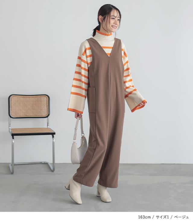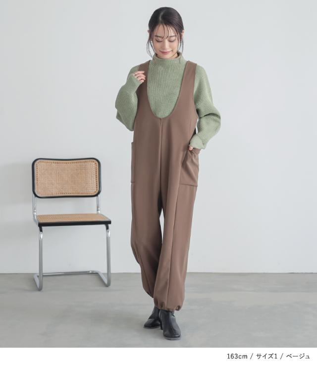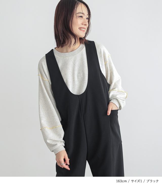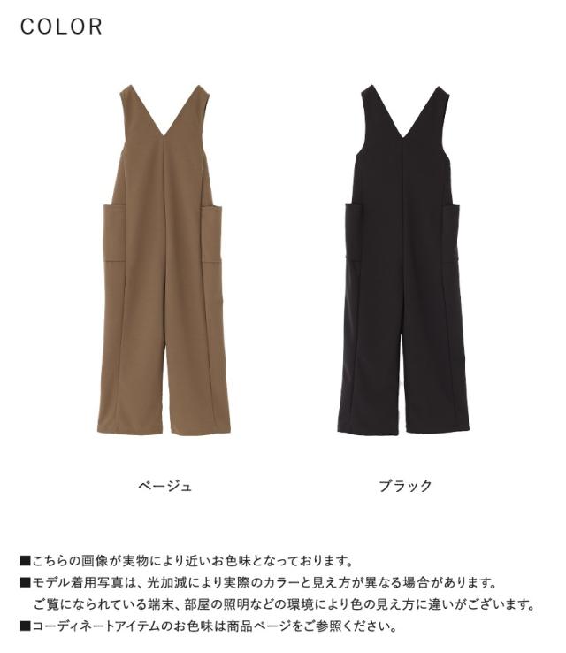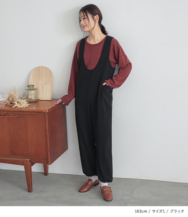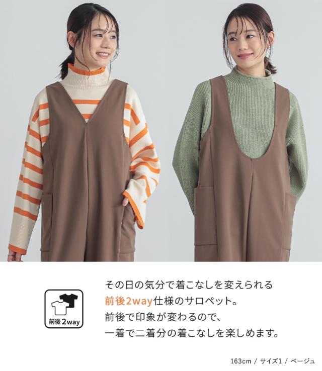 23日最大1200円クーポン 『前後2wayドロストサロペット』【メール便不可】【20】[サロペット レディース ボトムス オールインワン ドロスト Vネック Uネック カットソー 無地 2way ポケット]