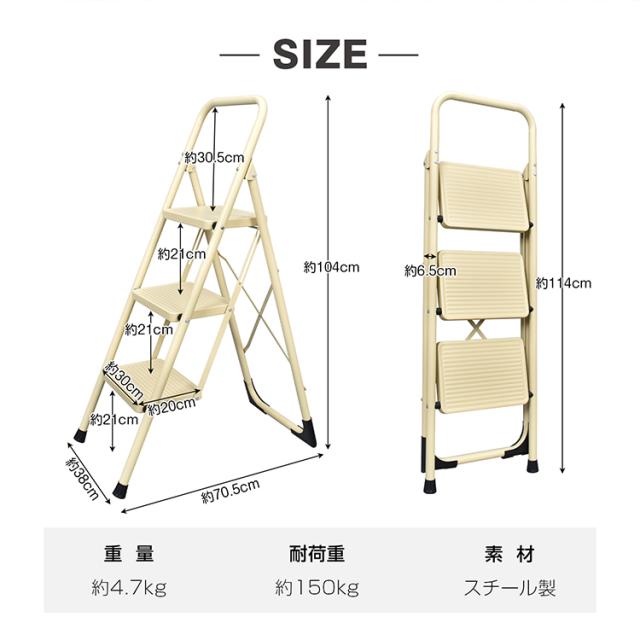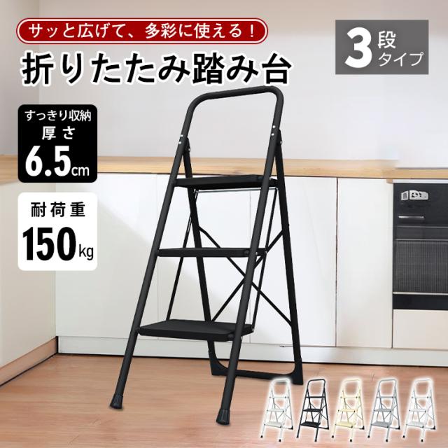 新生活 踏み台 3段 折り畳み式 折りたたみ 厚さ6.5cm 脚立 ステップ台 耐荷重150kg スツール ディスプレイラック キッズステップ おしゃれ 3段脚立 折りたたみステップ 滑り止め加工 コンパクト ステップチェア ステップスツール はしご 掃除 家庭用 sg236