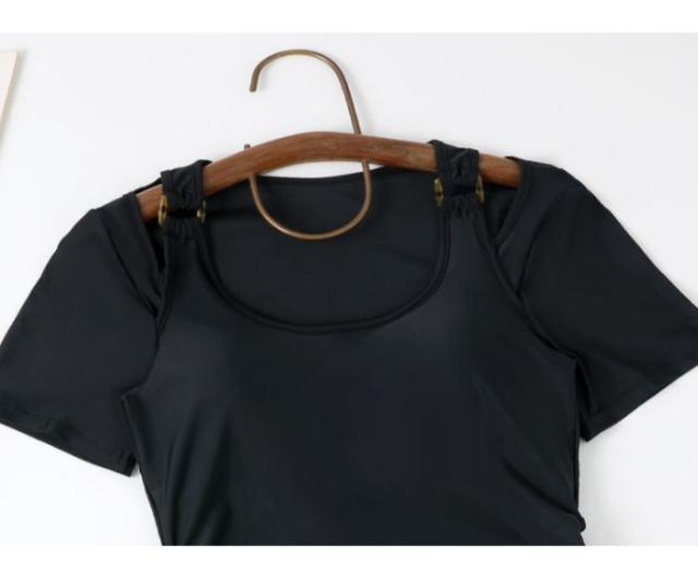 ロリ水着レディースワンピーススリム2024新品スリム温泉水着ブラック