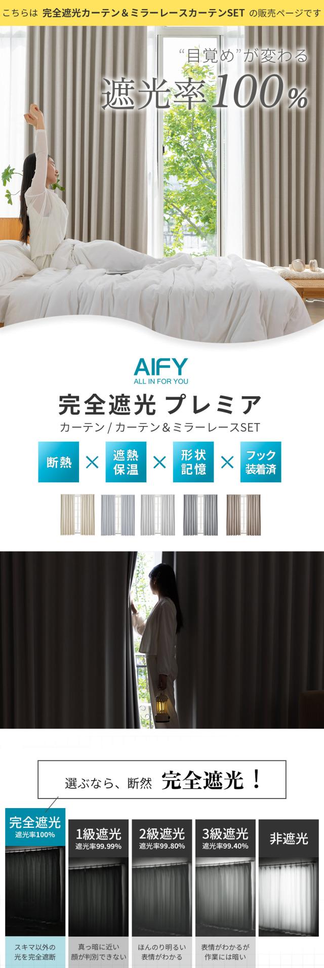 遮光カーテン 4枚セット カーテン 4枚組 完全遮光 1級遮光 カーテン ミラーレースカーテン 暗幕カーテン 遮光カーテン レースカーテン 断熱カーテン 遮熱 ミラーレース 洗濯OK 形状記憶 ポイント消化 送料無料 AIFY アイフィー