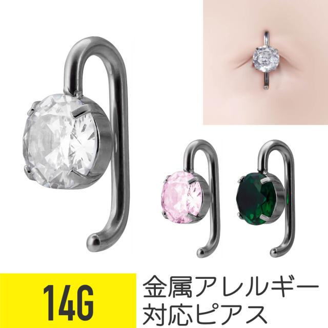 ネイブル フック ジュエル へそピアス 14G サージカルステンレス ジルコニア シルバー ヘリックス 軟骨ピアス ボディピアス ヘソピ 臍