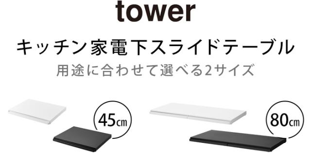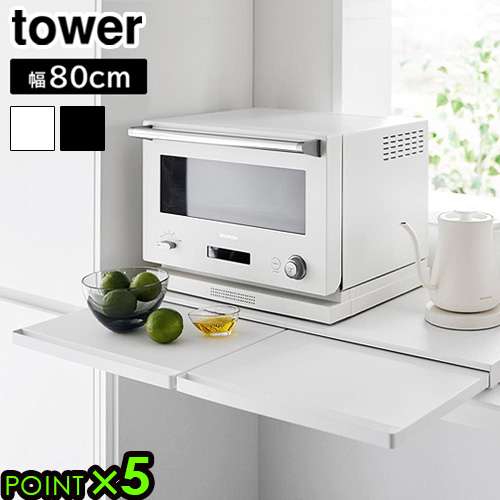 タワー 山崎実業 tower キッチン家電下スライドテーブル W80 1684 1685 YAMAZAKI レンジ台 トースター台 引き出し 作業台 作業用スペース キッチンツール 調理スペース レンジテーブル スライドラック テーブル 省スペース P5倍 送料無料