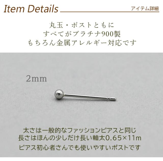 | セカンドピアス ピアス オール プラチナ(PT900)製 丸玉ボール シンプルピアス [2mm] |