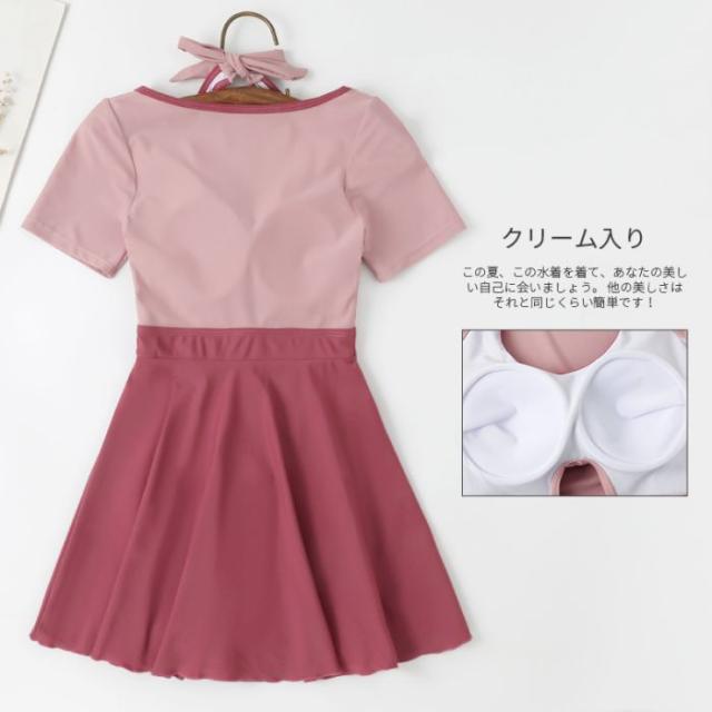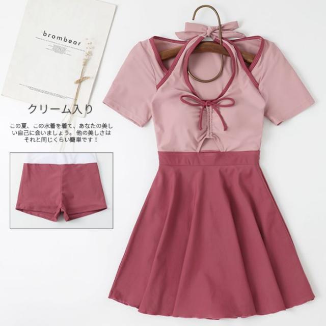 ラズベリー色甘い少女ワンピーススカート式温泉水着かわいいワンピース学生水着