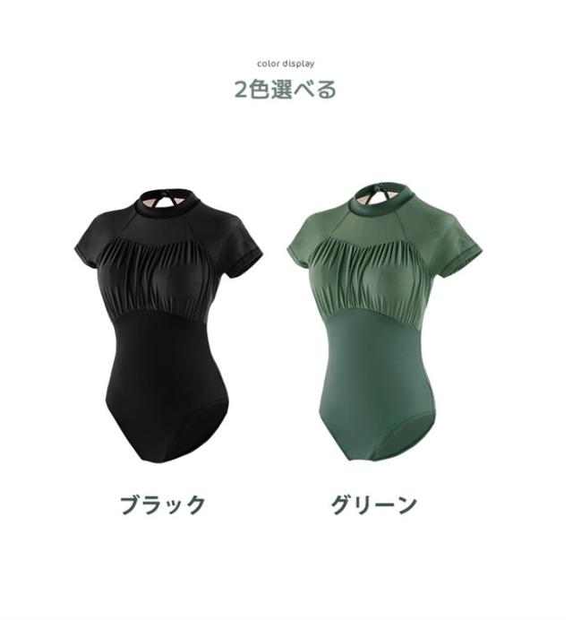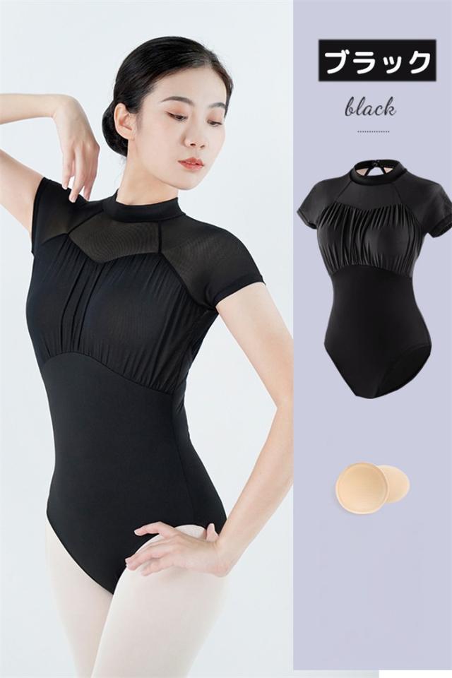 バレエ レオタード 大人 レディース ジュニア ハイネック 半袖 オープンバッグ レッスン着 練習着 レオタード バレエ バレリーナ ダンス衣装 おしゃれ かわいい 伸縮性 ストレッチ 通気性 発表会 コンクール 体操 黒 緑 S M L 2L 3L d1063d7d7z7