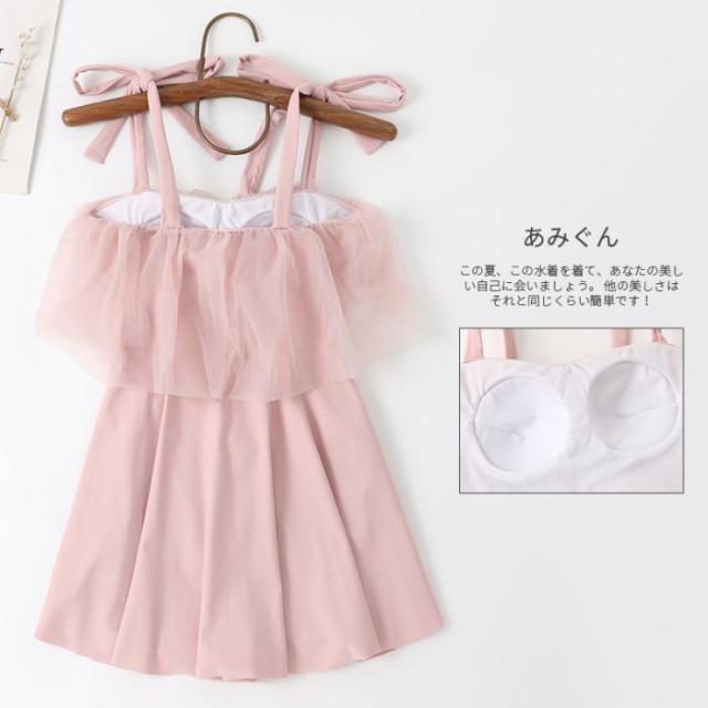 ピンクスウィートハート日系柔らかくかわいいかわいい少女素敵ワンピース水着女性フリルロリ無地学生水着