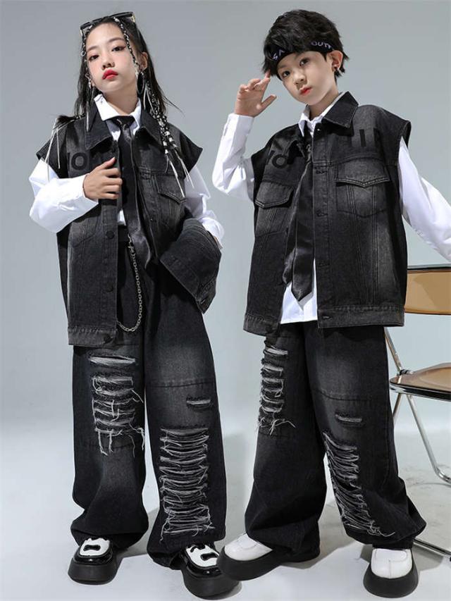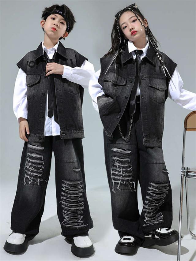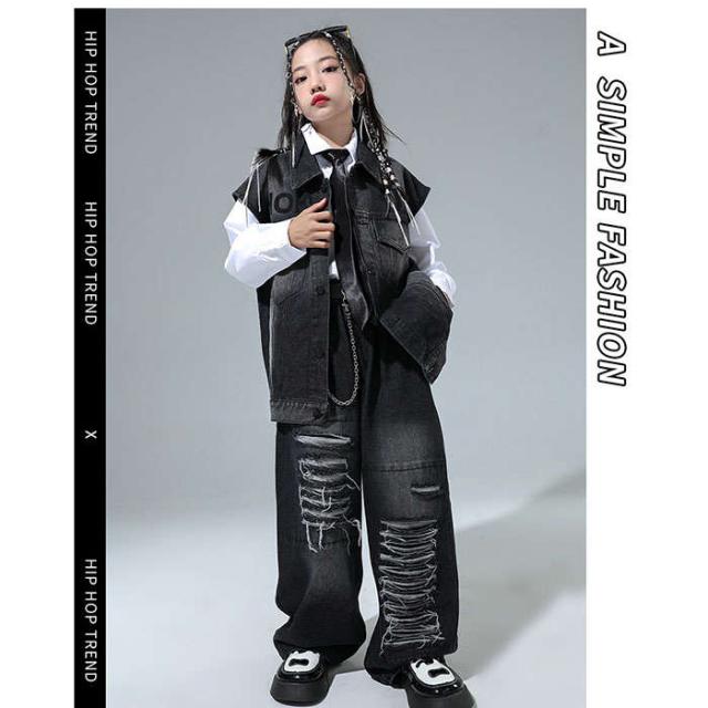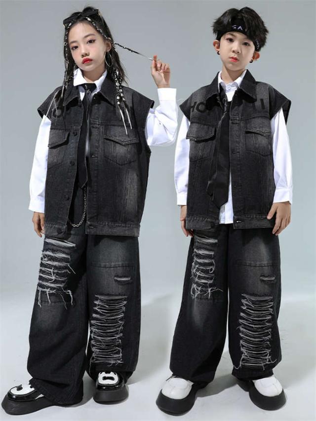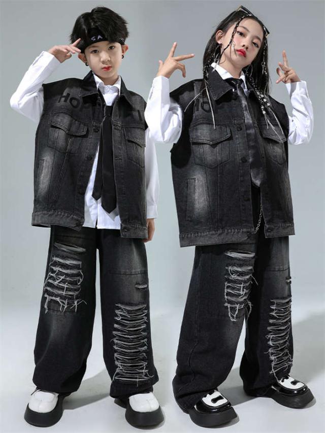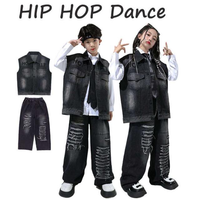 ダンス衣装 デニム ダンス服 女の子 男の子 白シャツ デニムベスト デニムパンツ ダンスウェア ヒップホップ ダンス着 hiphop jazz K-POP
