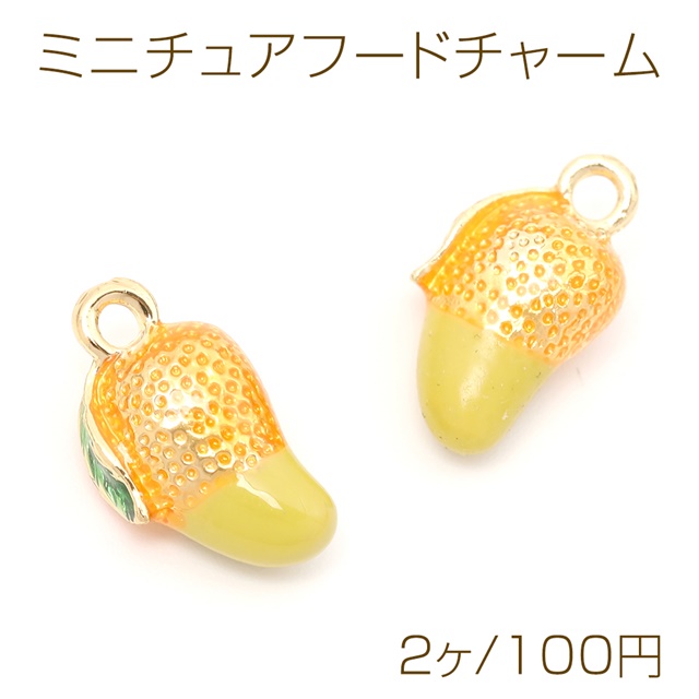 ミニチュアフードチャーム メタル製 食品サンプルチャーム フェイクフードチャーム マンゴー 1カン付き 約8×15mm(2ヶ)