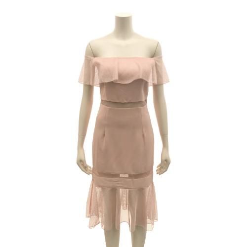 オフショルダーメッシュフリルワンピース(キャバドレス・CABARETDRESS)。