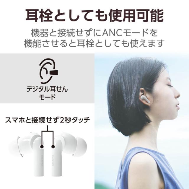 即納 代引不可 ELECOM ワイヤレスイヤホン Bluetooth 5.2 アクティブ ノイズキャンセリング 耳せん機能 低遅延モード 外音モード タッチセンサー 超軽量 ホワイト エレコム LBT-TWS15WH2