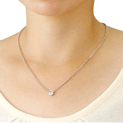 【メール便(ネコポス)対応】【送料無料】大粒キュービックジルコニアの輝きを人気の覆輪留めでセッティングしました。1.4カラットのキュービックジルコニアを、ソフトな丸みで石を大きく見せる覆輪留めでセッティング、一粒ながら上品な存在感が有ります。輝きをより引き立てる繊細なベルサーチェーンの磁気ネックレス。身に着けたとき胸元で美しい「Vライン」になる エレガントな磁気ネックレス。「覆輪留め」は、職人による手加工です。石の周囲を筒状で留める台座、裏側も開いているので光をしっかり取り込んで美しく輝きます。ソフトな丸みの筒状の覆輪留めは石の前面をさらに大きく見せます。