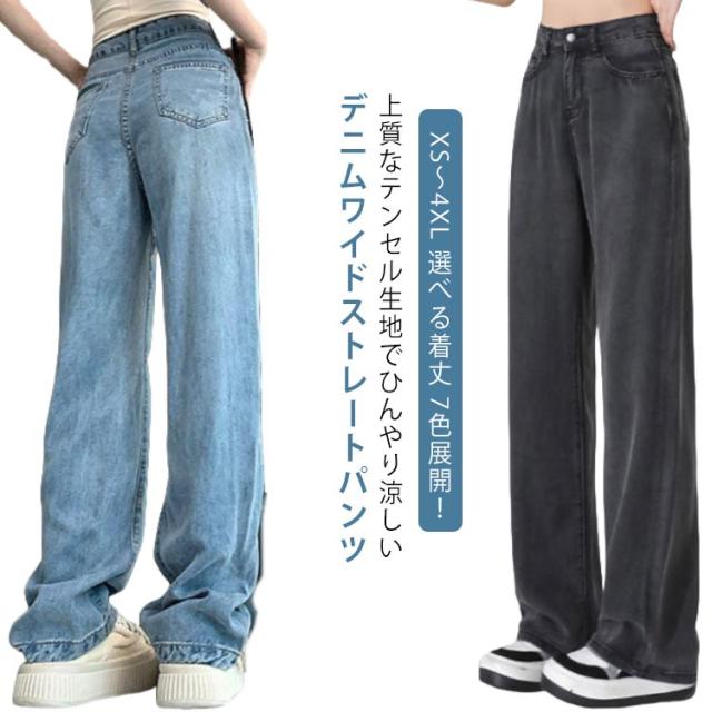 ひんやり 大きいサイズ 冷感 デニムワイドパンツ ワイドパンツ デニム 薄手 XS-3XL 涼しい レディース XS-3XL ロング丈 ワイド ストレート デニムパンツ ハイウェスト 夏 パンツ 細見え ジーンズ リラックスパンツ 夏用 ジーパン 接触冷感 テンセル