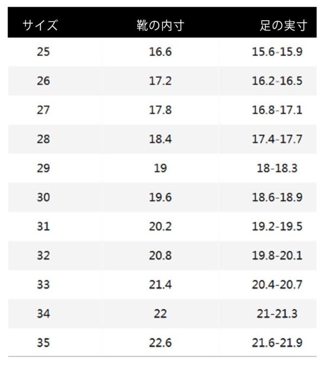 | サイズについての説明 | ※サイズは0.2-0.5cm程度の誤差があります、ご容赦下さいませ。 足の甲が高い、幅広い方はワンサイズ上に選択してください。 |