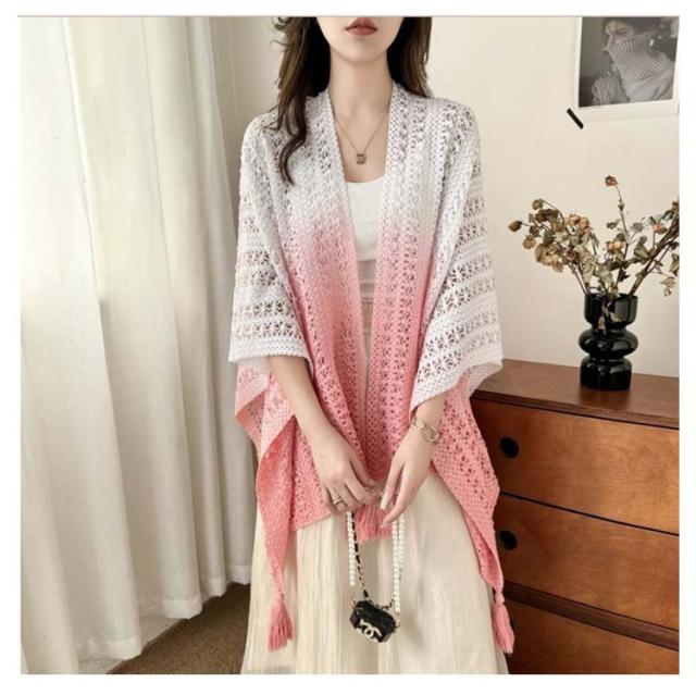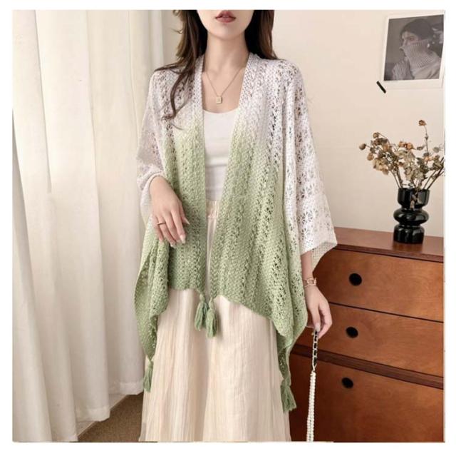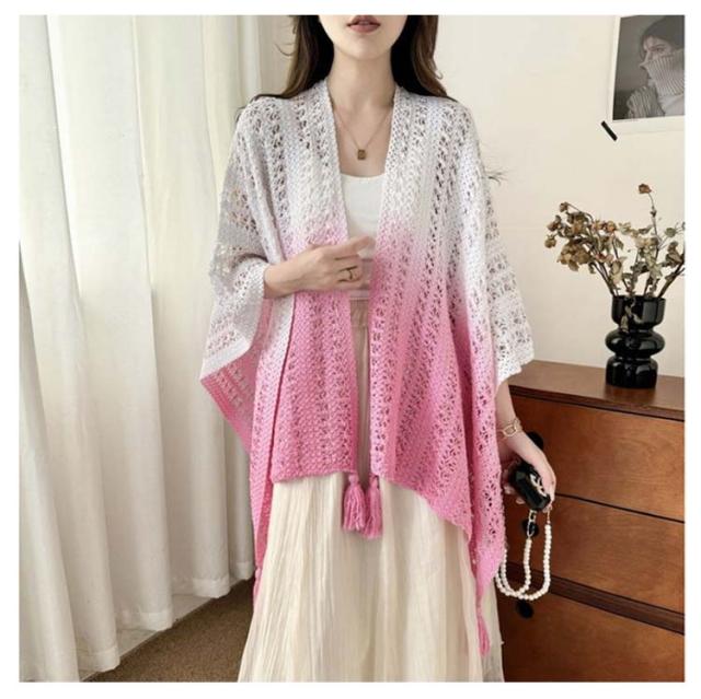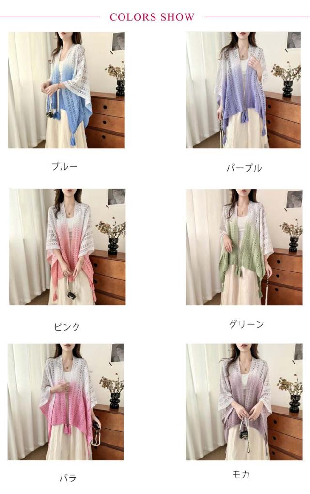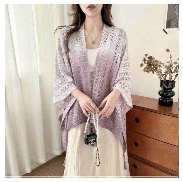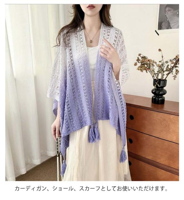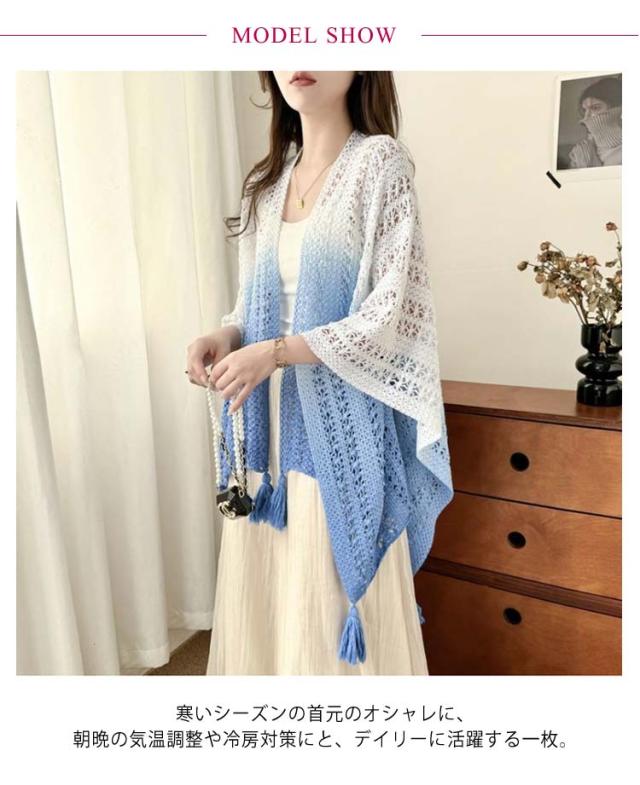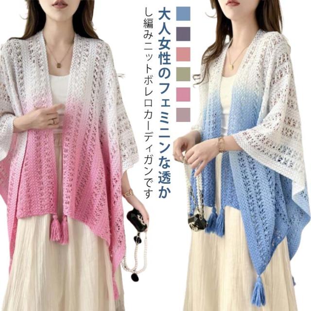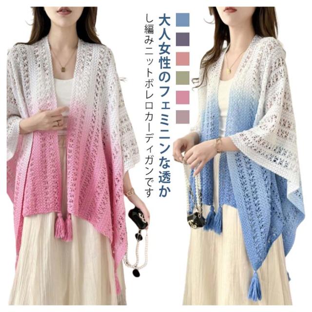 サマーカーディガン ショール 大判 サマーニット アウター ドルマンスリーブ ニット 透かし編み 夏 レディース 透かし彫り サマーカーディガン 紫外線対策 薄手 ノースリーブ 羽織 トップス ゆったり 大人 カジュアル きれいめ 上品 可愛い フェミニン グラデーション