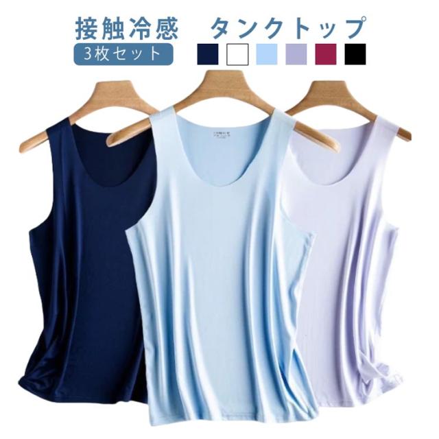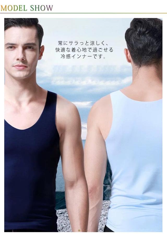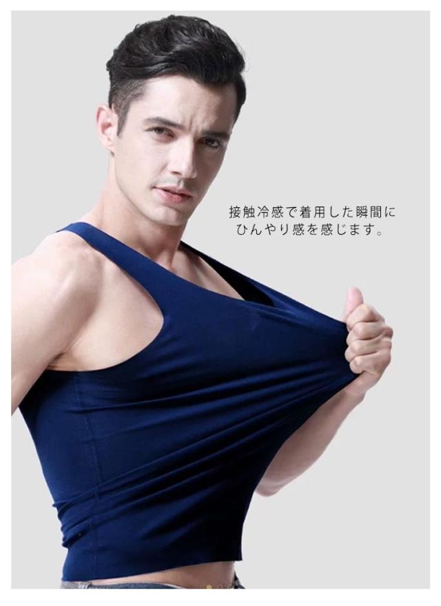 ひんやり インナーシャツ ノースリーブ メンズ タンクトップ 肌着 通気性 シームレス 【3枚セット】接触冷感 トップス 【3枚セット】接触冷感 涼しい 吸汗速乾 春夏 アンダーウエア ビジネス レイヤード 重ね着