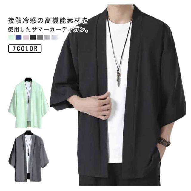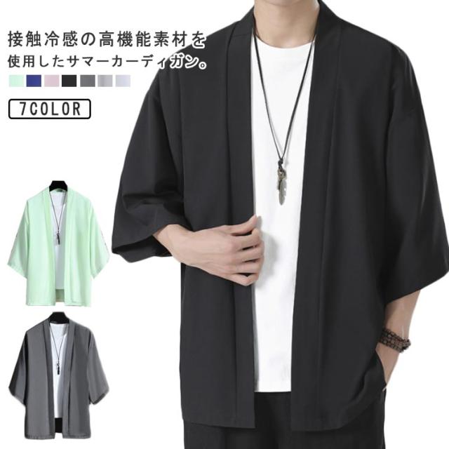 ルームウェア UVカット 夏用 接触冷感 速乾 涼しい 薄手 冷房対策 サマーカーディガン メンズ カーディガン 無地 羽織 和風 和装 着物 甚平風 アウター ゆったり 部屋着 春 父の日 夏服 秋 秋服 七分袖
