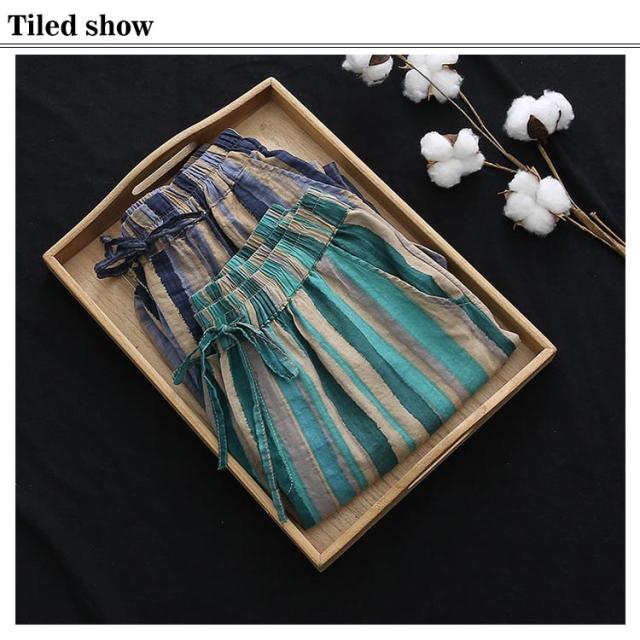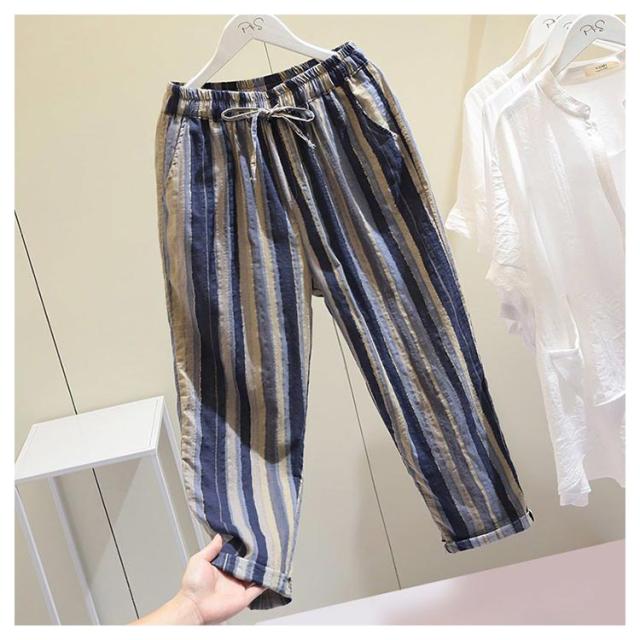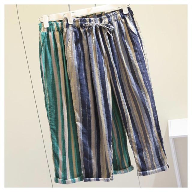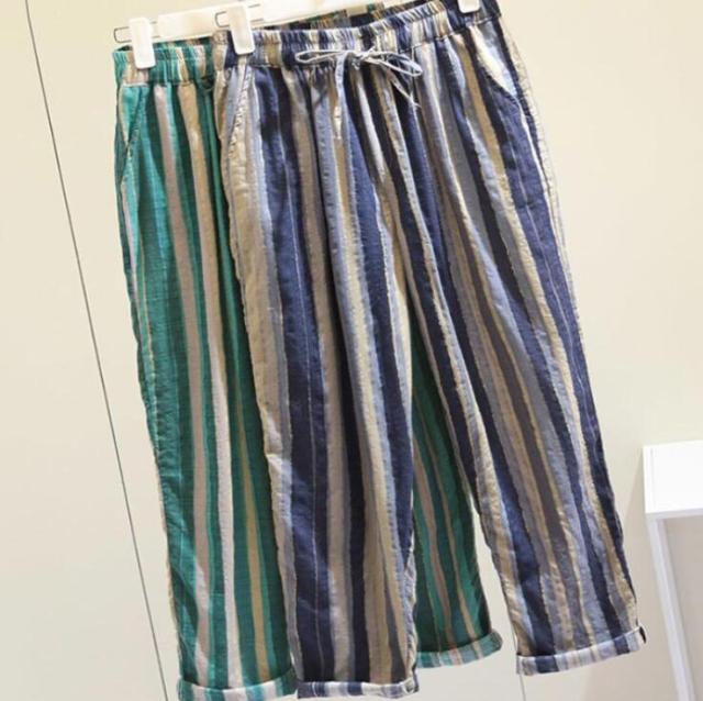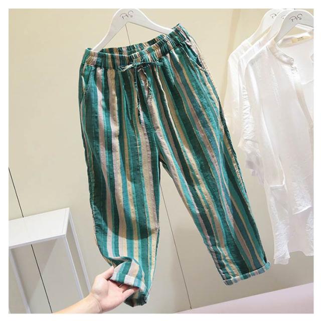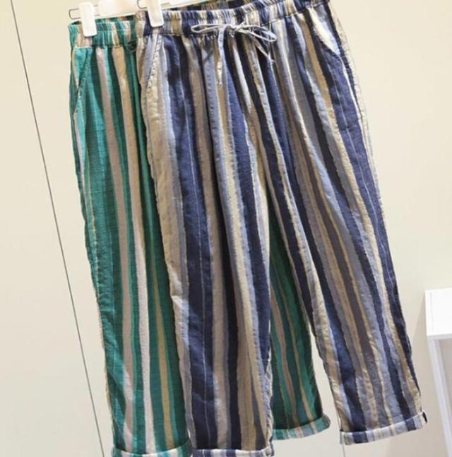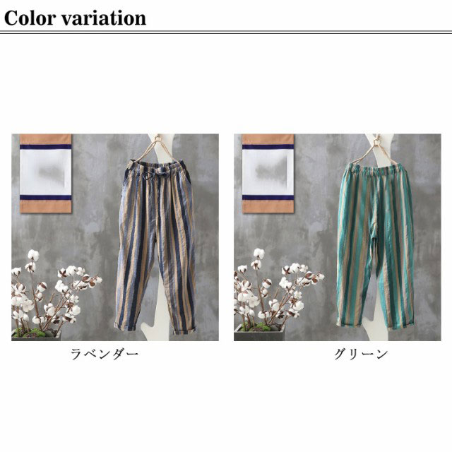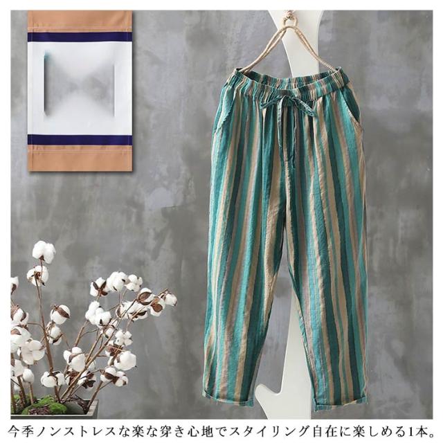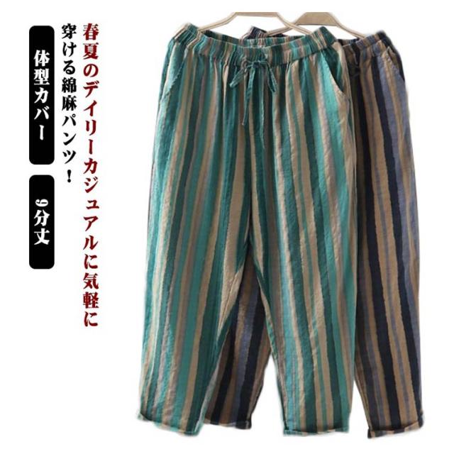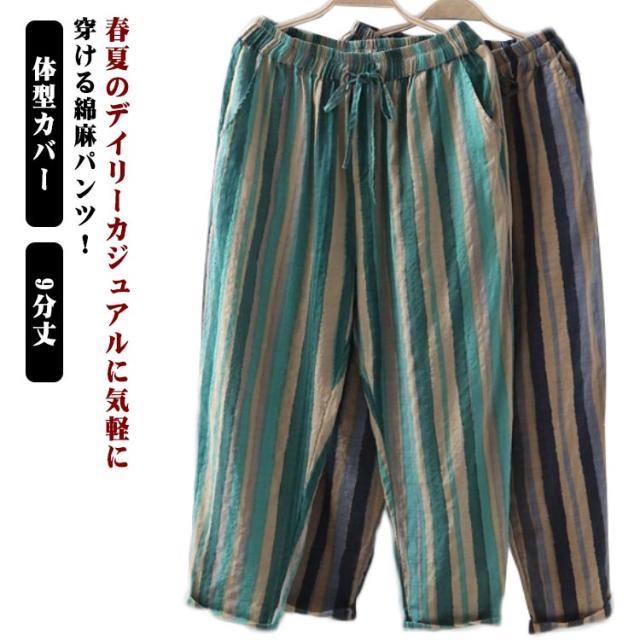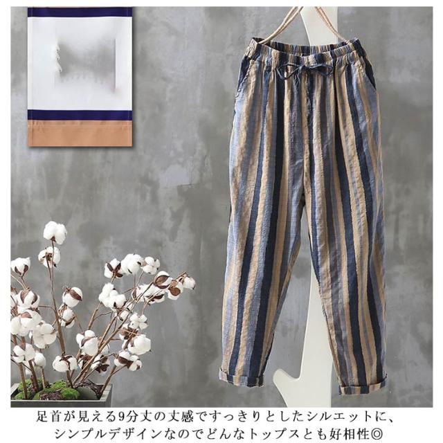 夏服 イージーパンツ 薄手 テーパード 涼しい カジュアルパンツ 9分丈 ワイドパンツ イージーパンツ パンツ テーパードパンツ 着?せ レディース 美脚 体型カバー ウエストゴム 大人 ストライプ柄 女性 ボトムス 春夏 部屋着 リラックス ギフト プレゼント
