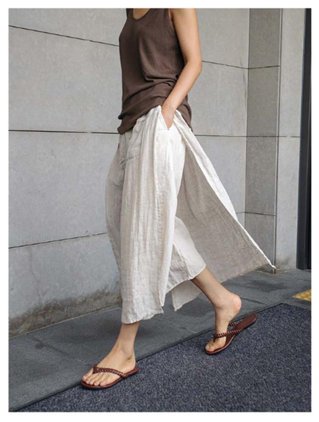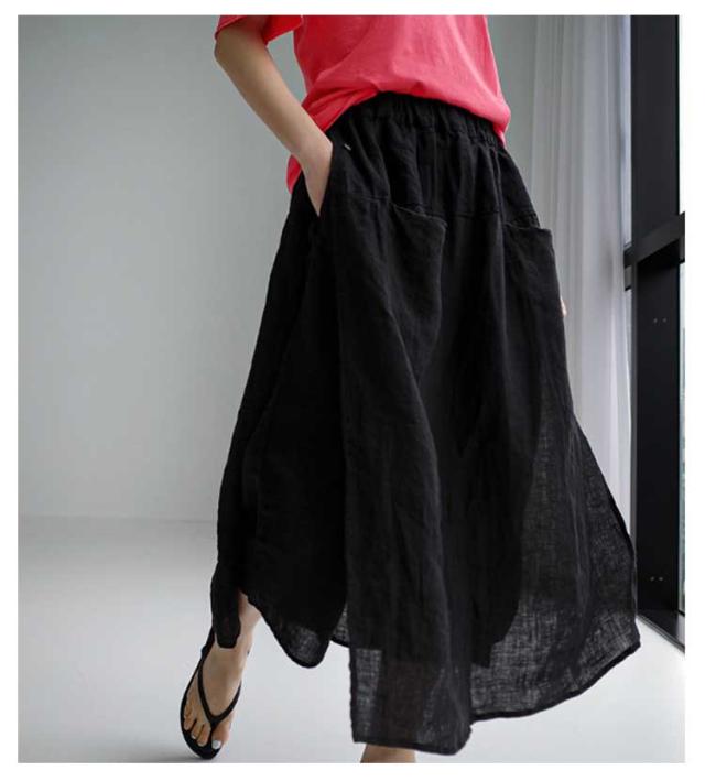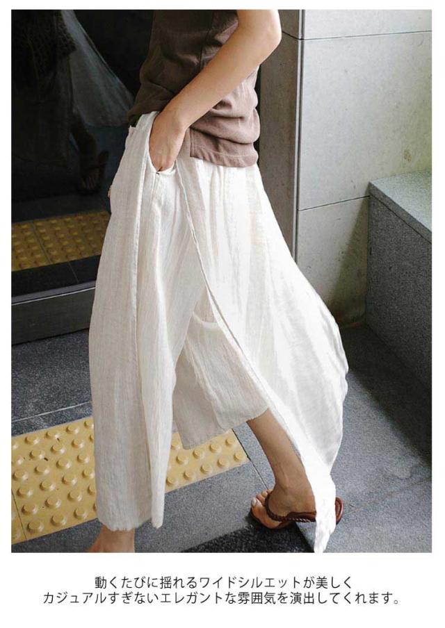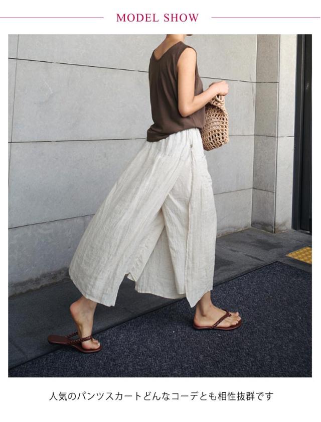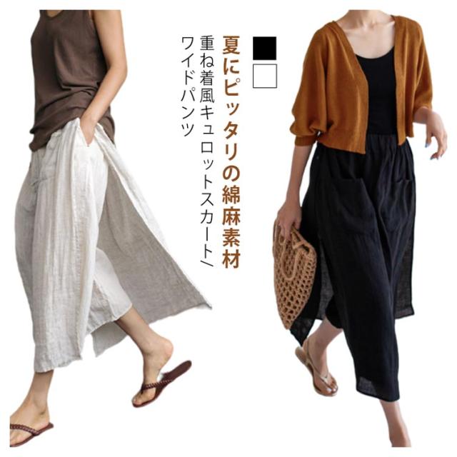 キュロットスカート パンツ 薄手 9分丈 綿 九分丈 スカーチョ ボトムス スカート 夏 春 ゆったり レディース 夏用 ワイドパンツ レイヤード 重ね着 風 透け感 フェイクスカート 涼しい スカートパンツ 麻 無地 体型カバー イージーパンツ リラックスパンツ ロングスカート