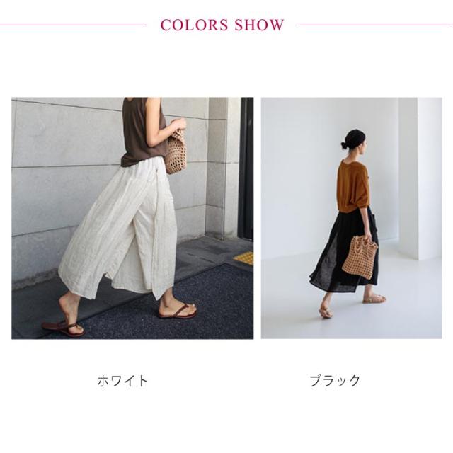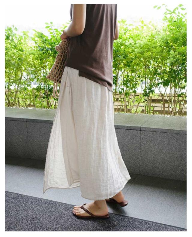 | 夏にピッタリの綿麻素材 重ね着風キュロットスカート/ワイドパンツ 人気のパンツスカート★どんなコーデとも相性抜群です♪ 動くたびに揺れるワイドシルエットが美しく カジュアルすぎないエレガントな雰囲気を演出してくれます。 シルエットに変化をつけたい気分の日に選びたい一本です。 | |