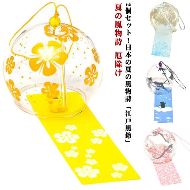 | 2個セット!日本の夏の風物詩「江戸風鈴」 玄関に、リビングに、そしてもちろん縁側にも… 涼やかな音色で癒しとくつろぎの空間を演出します。 日本の昔ながらの風情を楽しみ、涼を演出する粋な置物です。 ご自宅用はもちろん、プレゼントにしても喜ばれること間違いなしです♪ 選べる20タイプ、インテリアとしても最適! | |