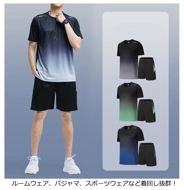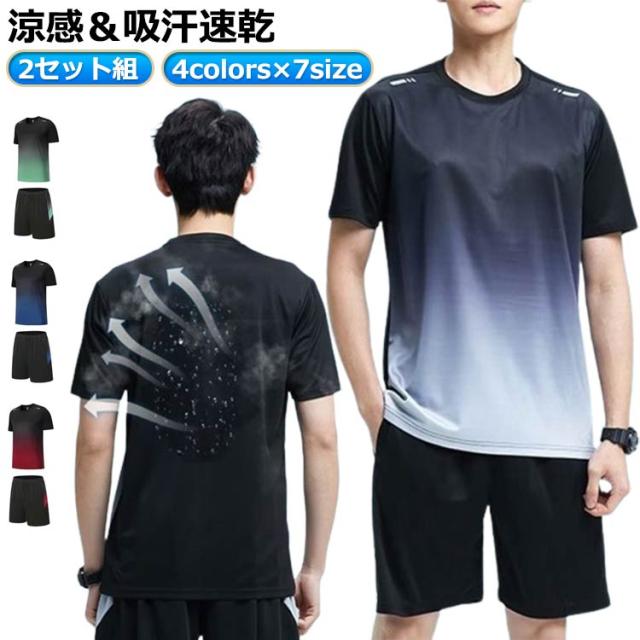 メンズ ジャージ 接触冷感 スポーツ ハーフパンツ 2セット組 涼感 セットアップ 半袖Tシャツ 短パン ジャージ 半袖 上下セット 吸汗速乾 スポーツウェア 速乾 冷感 ドライ ランニングウェア トレーニングウェア おしゃれ 通気性 軽量 夏用 ジャージパンツ