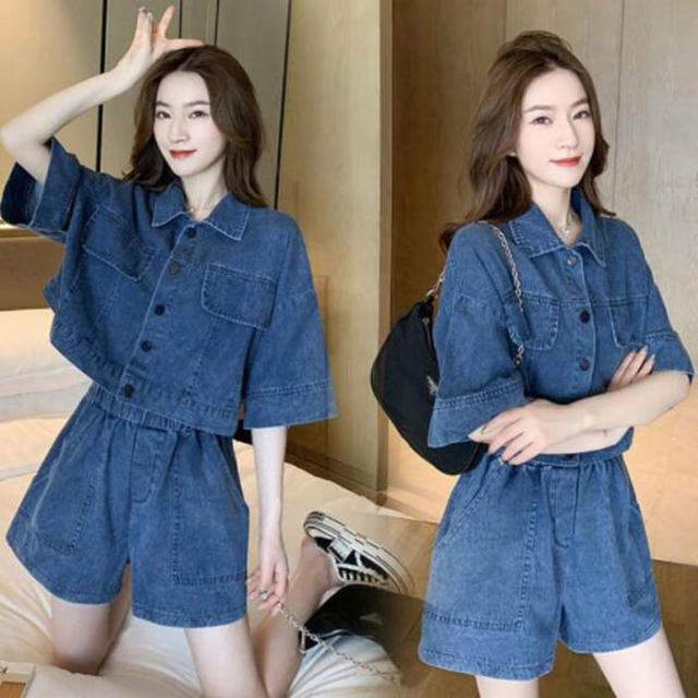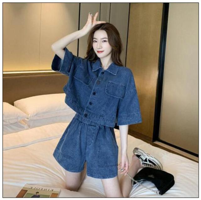 レディース デニムシャツ + ショートパンツジーンズ 半袖 デニムジャケット デニムパンツレディースファッション スーツ セットアップ パンツスーツ