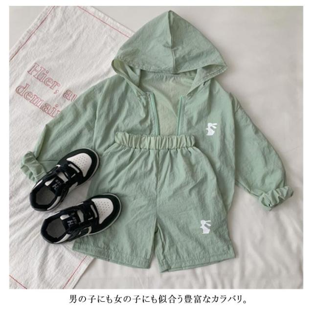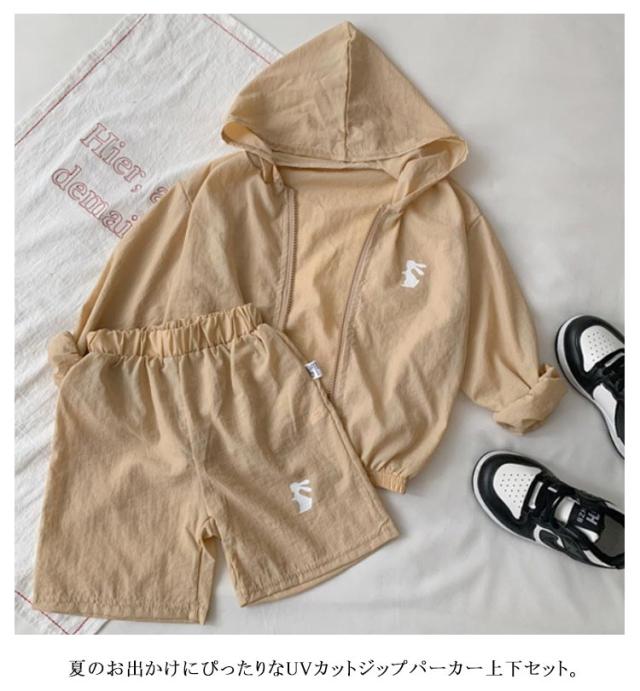 セットアップ UV対策 パーカー 夏 ショートパンツ ベビー アウター 男の子 ハーフパンツ 女の子 羽織り キッズ ジップパーカー 兄妹 上下セット ジュニア シンプル 半ズボン 90 軽い 長袖 韓国子供服 キッズ 100 110 120 130 140 150