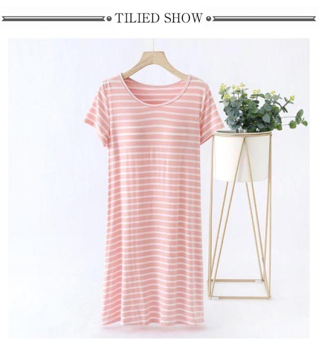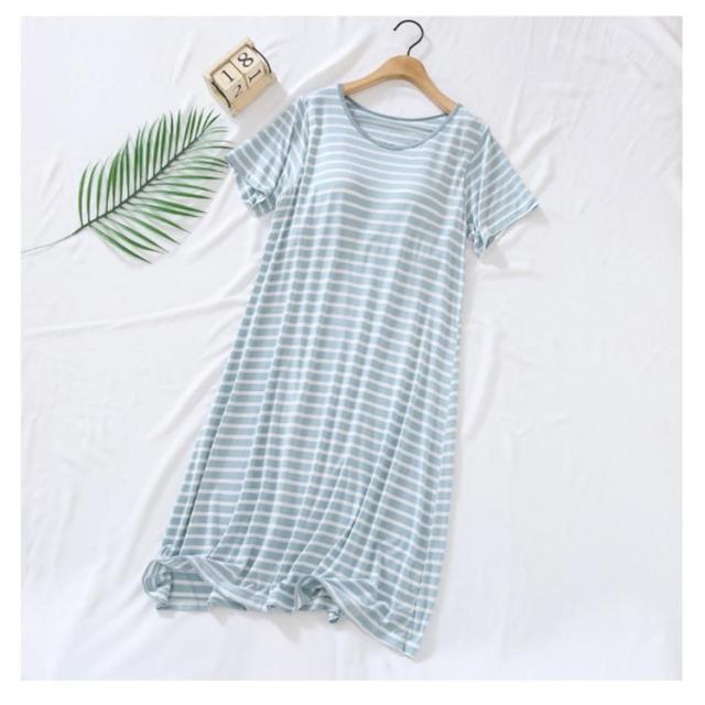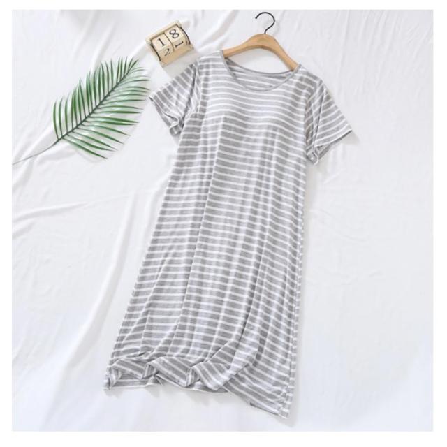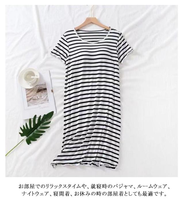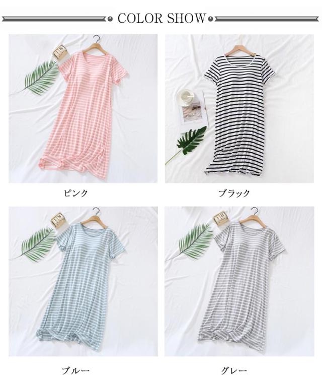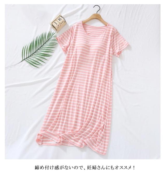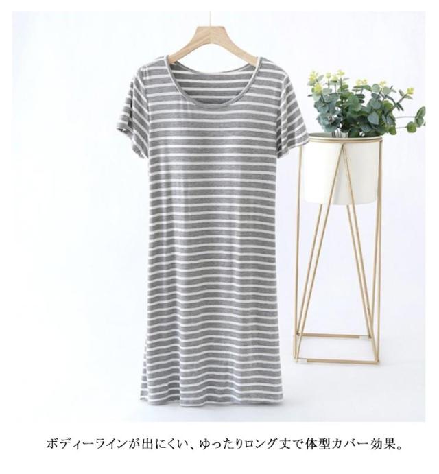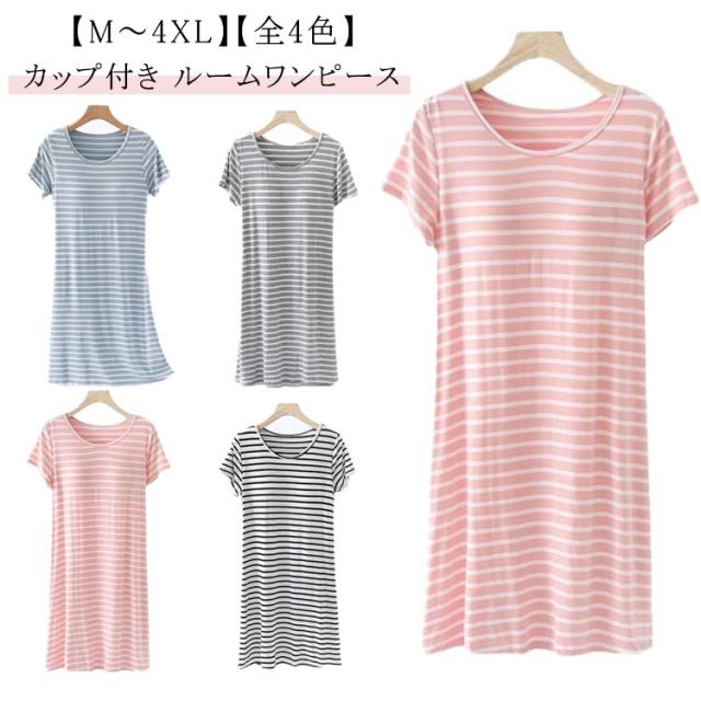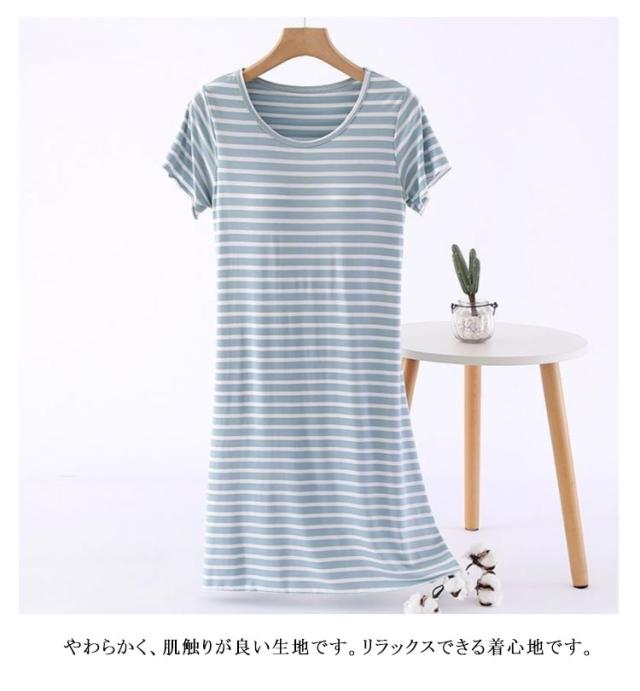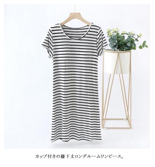 ワンピース レディース 半袖 ルームウェア ロング 寝間着 ボーダー柄 夏 パジャマ ロングワンピース 部屋着 ナイトウェア ミモレ丈 ルームワンピース ネグリジェ カップ付き 女性 かわいい シンプル 柔らかい 膝下