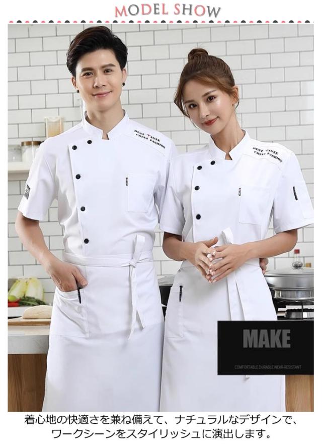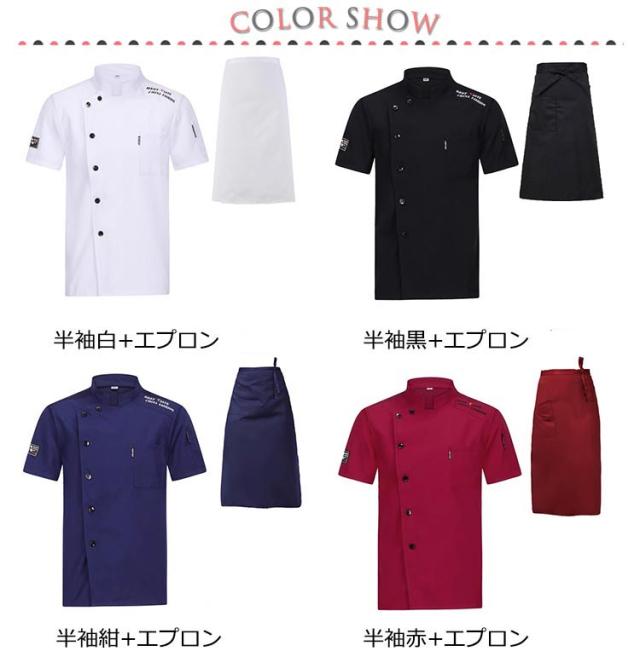 ユニフォーム コックシャツ 半袖 夏 コック服 コックウェア 半袖/七分袖 トップス+エプロン 調理用 調理白衣 コックシャツ 男女兼用 白衣 通気性 黒 飲食店 飲食店制服 厨房服 薄手 メンズ レディース 居酒屋 制服 レストラン 厨房 仕事着 おしゃれ ユニフォーム 白 黒 紺