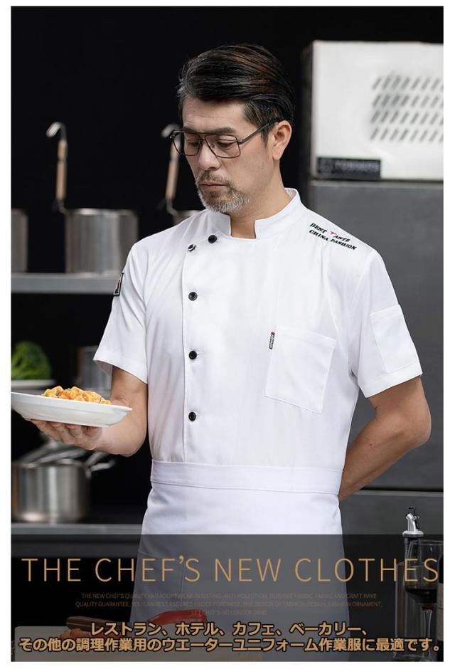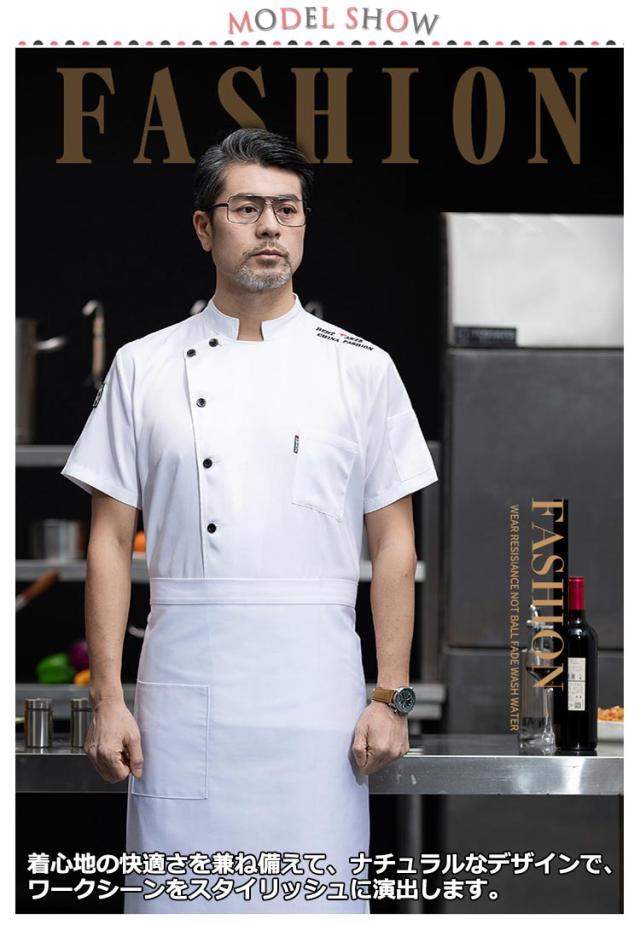 コックウェア パン屋 コックシャツ 半袖 トップス 夏 コックコート 通気性 調理用 調理服 半袖 コックシャツ 料理長 トップス+エプロン 厨房用制服 コック服 ユニフォーム 作業服 飲食店 ケーキ屋 コックウェア トップス シェフ制服 コック服 メンズ レディース 男性