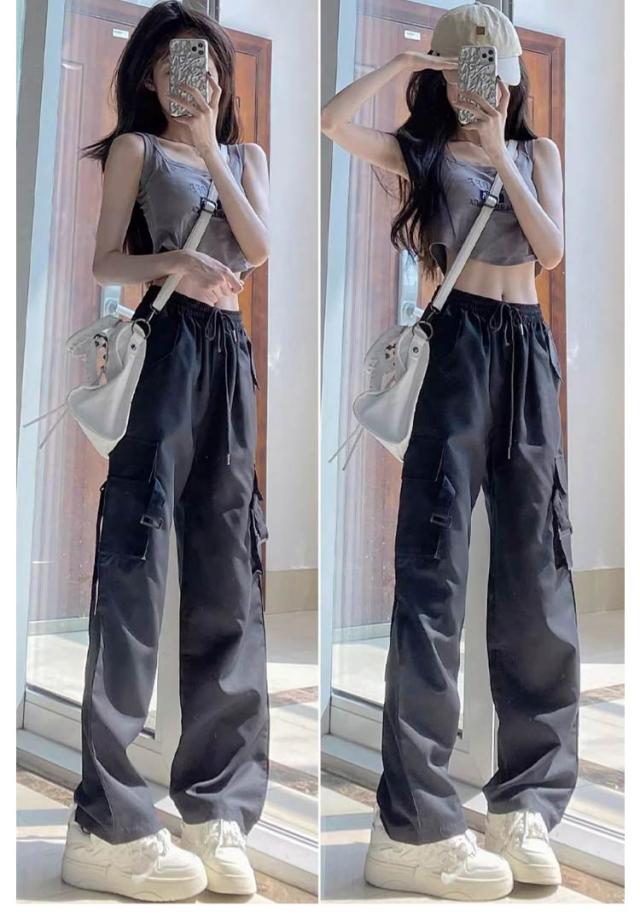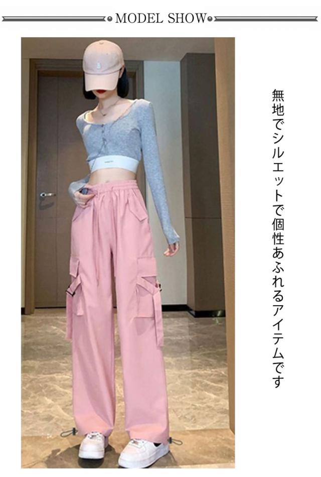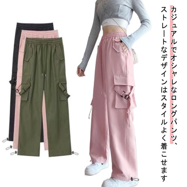 ハイウエスト カーゴパンツ レディース カーゴパンツ ロングパンツ ズボン ストリート ワイドパンツ ゆったり ダンス 春 ウエストゴム 秋 冬 ボトムス かわいい 美脚効果 カジュアル 普段着