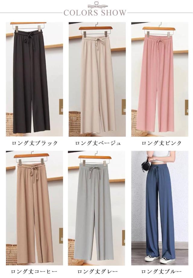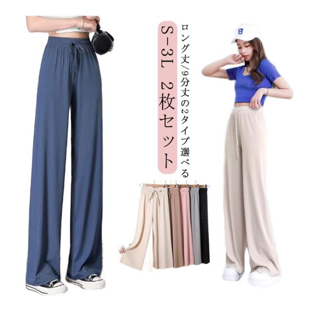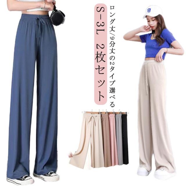 レディース ワイドパンツ 2枚セット 冷感 冷感 ロング丈/9分丈の2タイプ 夏 高身長 低身長 夏用 ガウチョパンツ 涼しい ルームウェア 春夏 ひんやり ストレッチ 接触冷感 大きいサイズ イージーパンツ ワイドパンツ