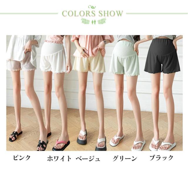 パジャマ マタニティ 短パン 接触冷感 ルームウェア ショート ハーフパンツ リブ ショートパンツ レース 無地 薄手 アジャスター ショーパン 部屋着 ズボン 妊婦 パンツ ルーム ウェア 夏 春 冷感 マタニティウェア