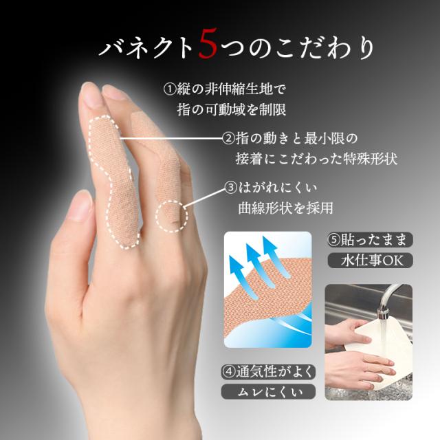指用サポートテープ バネテクト 指用サポーター サポーター 指 サポート テープ 指 関節 保護 水仕事 簡単固定 強粘着 男女兼用 目立ちにくいベージュ 日本製