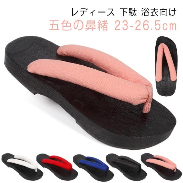 | レディース 下駄 浴衣向け 五色の鼻緒 23-26.5cm 幅広で柔らかい太い鼻緒は足に優しく、長時間履きっぱなしても、指が擦れにくい 夏祭りや花火大会の浴衣や、カジュアルな夏着物によくお似合いです | |