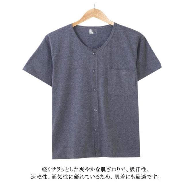 Tシャツ シンプル 肌着 綿 半袖 ポケット付き メンズ インナーシャツ 下着 薄手 部屋着 前開き 無地 ルームウェア 吸汗速乾 クールネック 介護用 トップス 男性 快適 前開き 前あき 高齢者 シニア コットン 夏