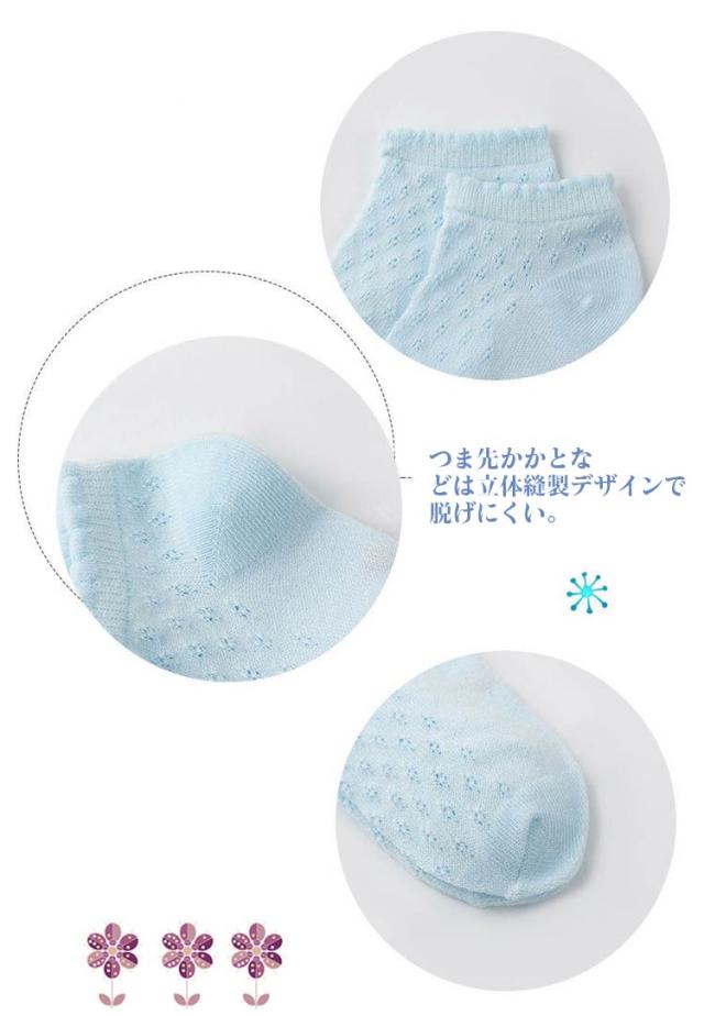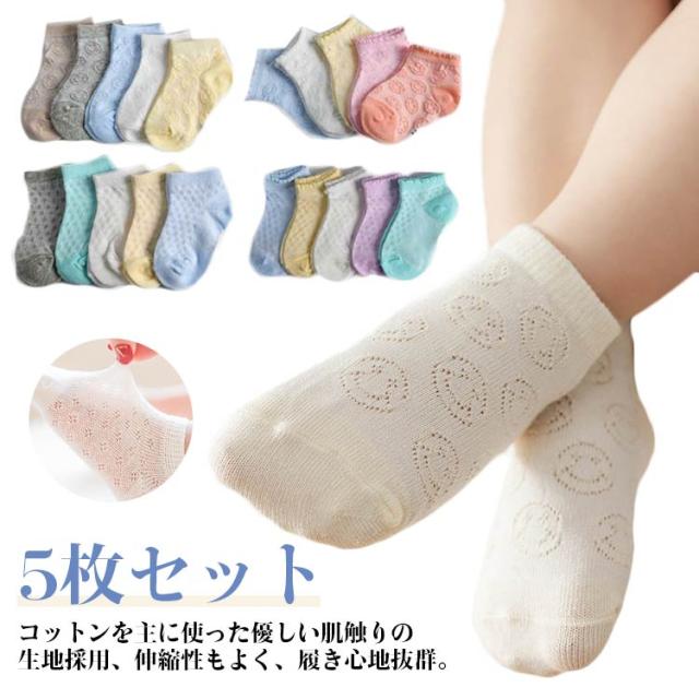 ベビーソックス 5枚セット 靴下 ベビー ソックス メッシュ キッズ 5足組 子供用靴下 赤ちゃん あかちゃん 靴下 男の子 女の子 ベビー用品 滑り止め付き コットン 綿 新生児 幼児 柔らかい 伸縮性 かわいい