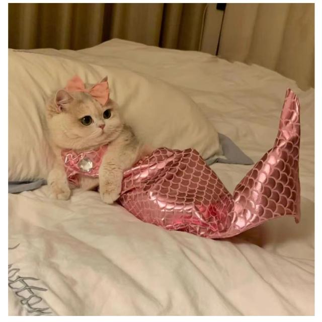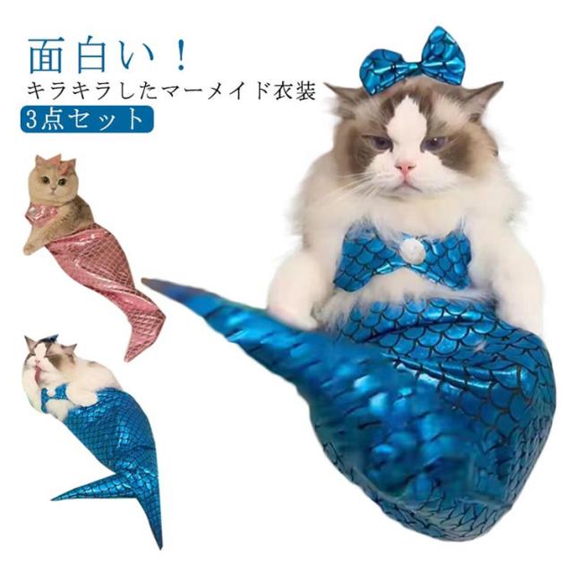 面白い キャットウェア ペットウエア ペット衣装 3点セット ペット服 猫服 ペットコスプレ 猫 人魚 可愛い ペットコスチューム ペット着ぐるみ 猫コスプレ 衣装 コスプレ 服 3点セット 人魚姫変装ペット服 マーメイド きらきら ハロウィーン ペット用品 S M