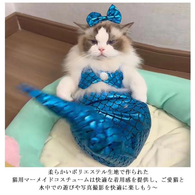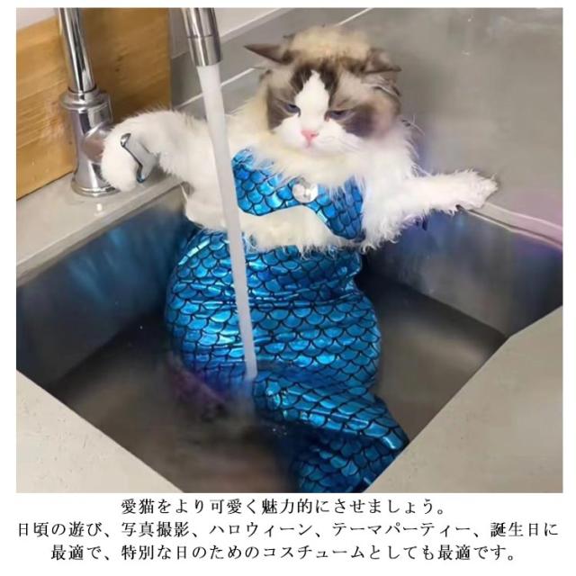 | 面白い!キラキラしたマーメイド衣装3点セット、まるで本物の人魚のように見えます、猫ちゃんの愛らしさを一層引き立てます。 柔らかいポリエステル生地で作られた猫用マーメイドコスチュームは快適な着用感を提供し、ご愛猫と水中での遊びや写真撮影を快適に楽しもう〜 愛猫をより可愛く魅力的にさせましょう。日頃の遊び、写真撮影、ハロウィーン、テーマパーティー、誕生日に最適で、特別な日のためのコスチュームとしても最適です。 | |