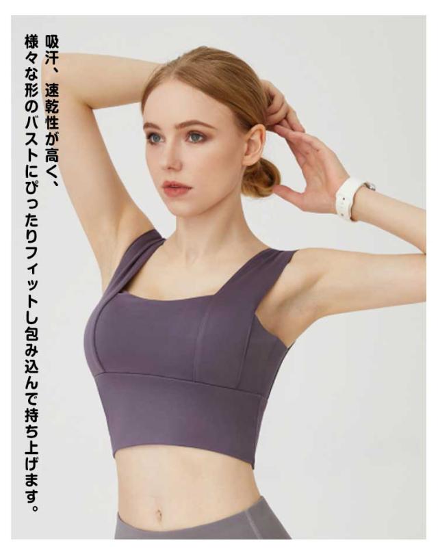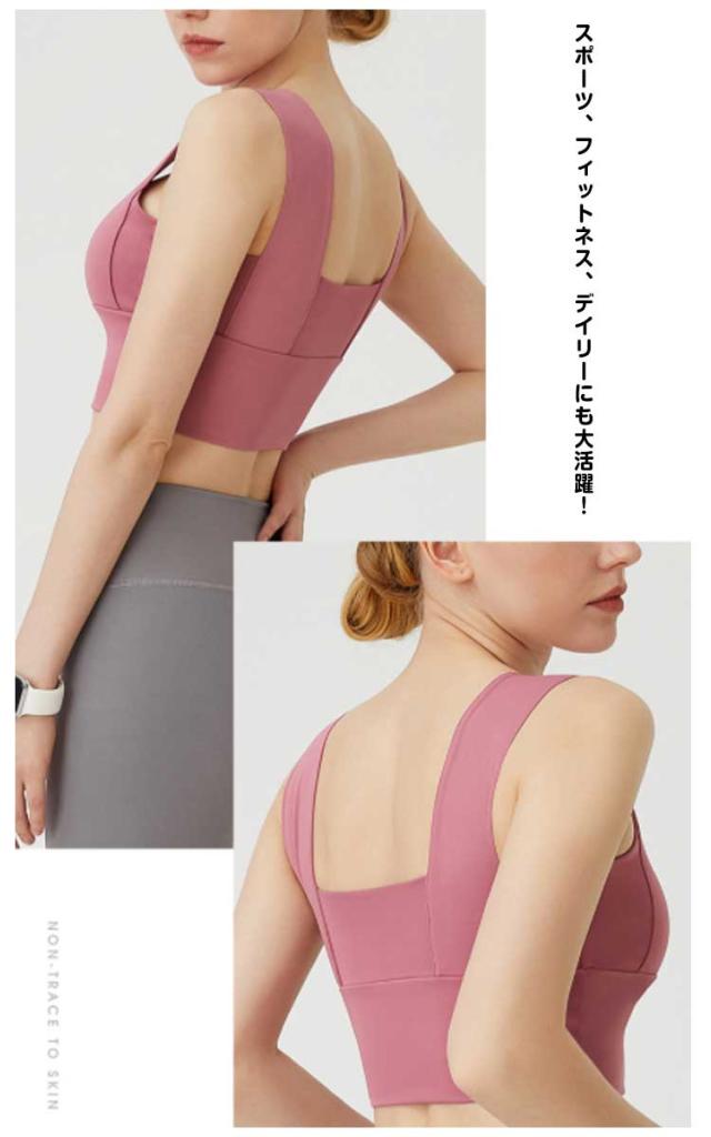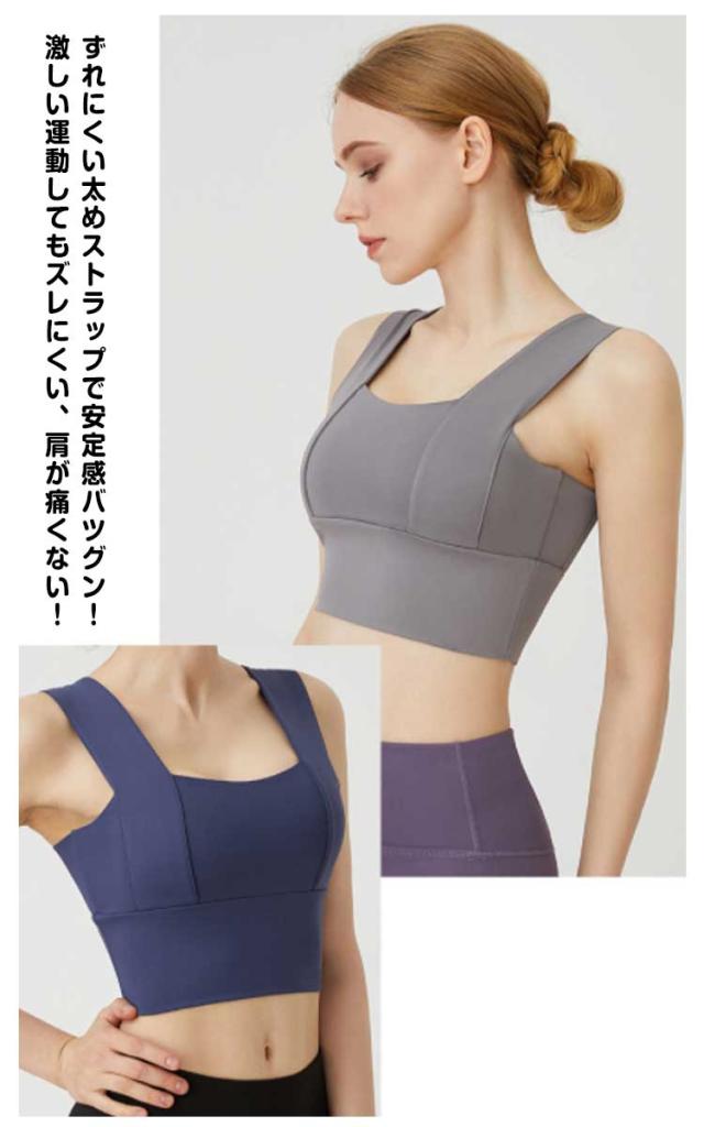 | インナーとしてもアウターとしても使用できるスポーツブラ。 幅広いブラストラップとノンワイヤーの伸縮素材でしっかりサポートし、バストの揺れを防ぐ。 吸汗、速乾性が高く、様々な形のバストにぴったりフィットし包み込んで持ち上げます。 ノンワイヤーでストレッチ素材を使用。激しい動きでもしっかりサポート!バストの横流れも防止します。 ずれにくい太めストラップで安定感バツグン!激しい運動してもズレにくい、肩が痛くない! スポーツ、フィットネス、デイリーにも大活躍! | |
