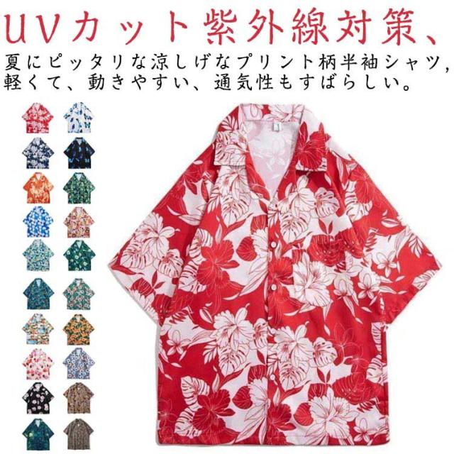 | UVカット紫外線対策、夏にピッタリな涼しげなプリント柄半袖シャツ,軽くて、動きやすい、通気性もすばらしい。 程よくリラックス感のあるシルエットで抜け感も付与した絶妙なシャツに仕上がっています。 オシャレなデザインコーディネートしやすく、リゾートウェディング、ビーチ 結婚式、夏祭り、ハワイ、 沖縄旅行などのいイベントにおすすめます。 一枚だけで着るのはもちろん、Tシャツに羽織ったり、カーディガンのインナーにしたりと、アレンジが楽しめるのも | |