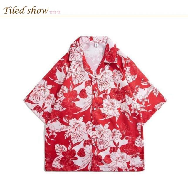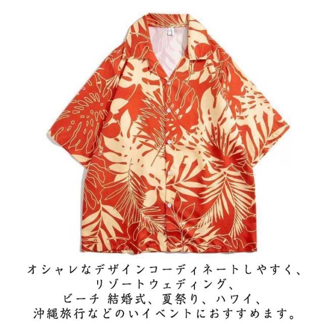 夏服 総柄 冷感 レディース 半袖 メンズ アロハシャツ 開襟 カジュアルシャツ 女性 ユニセックス 速乾 リゾート 男性 ゆったり ビーチシャツ ハワイアンシャツ ビーチ 旅行 海 カラフル レッド 半袖シャツ カジュアルシャツ 総柄