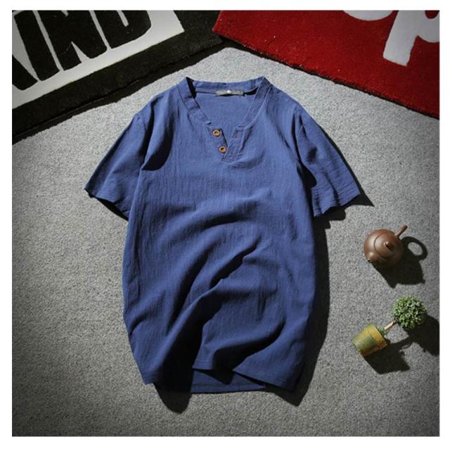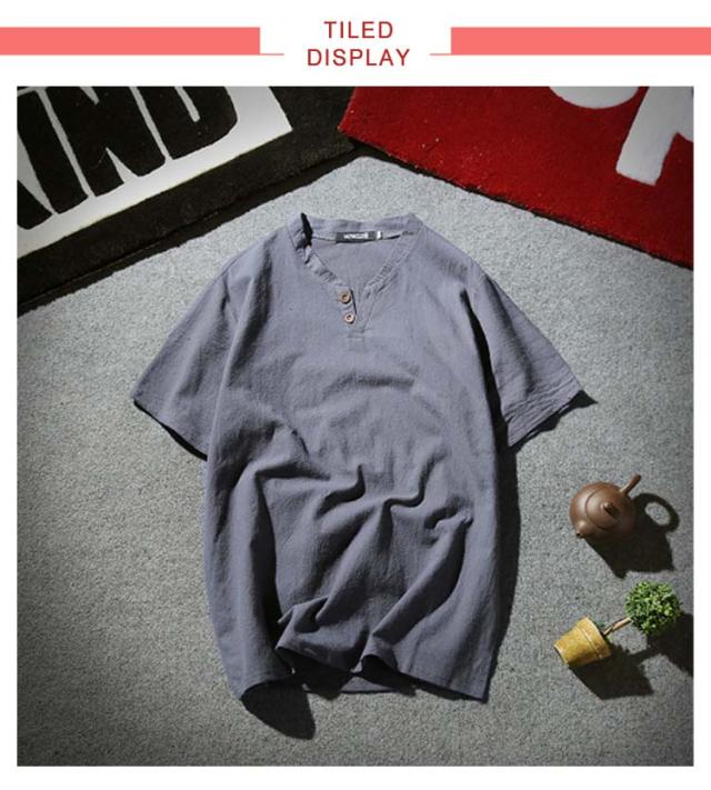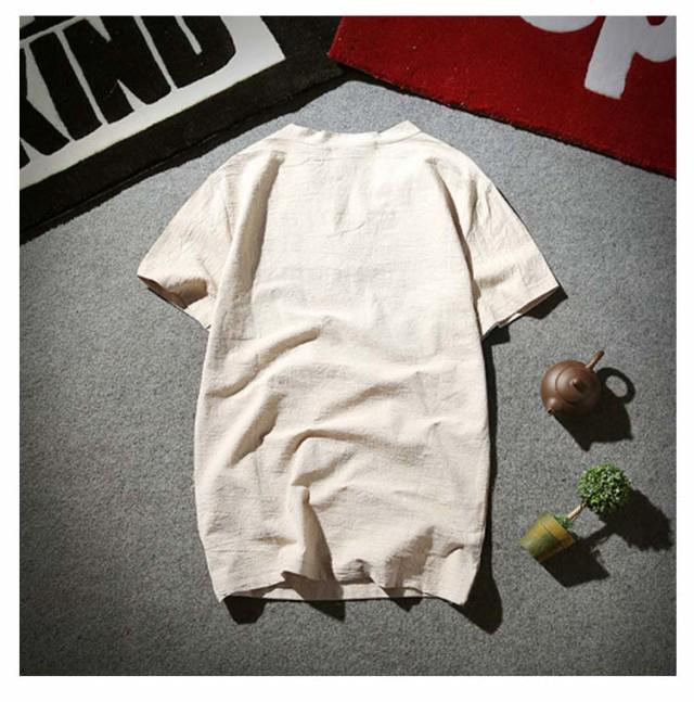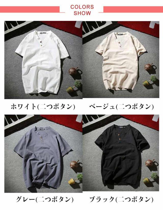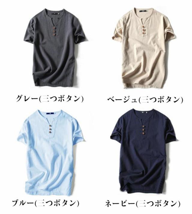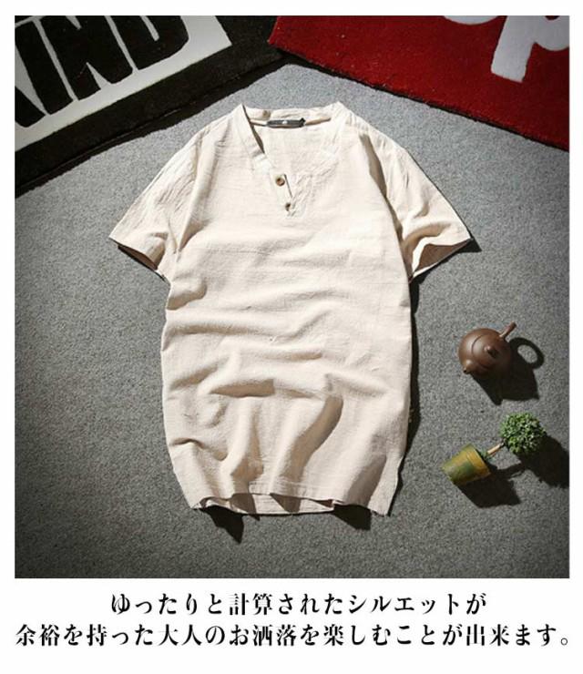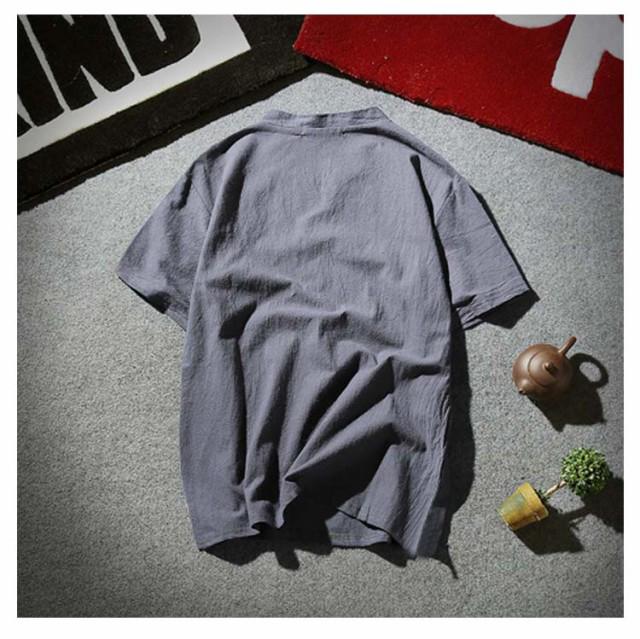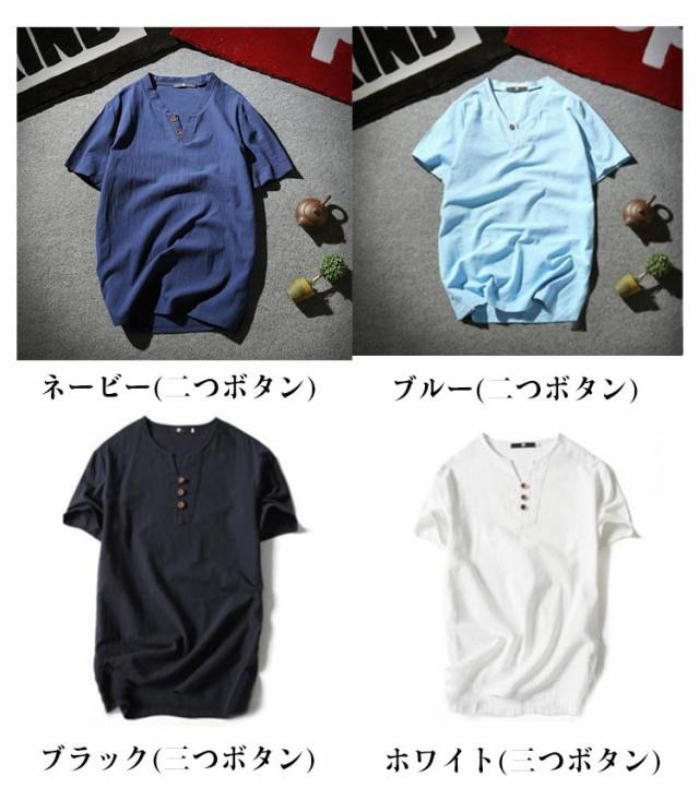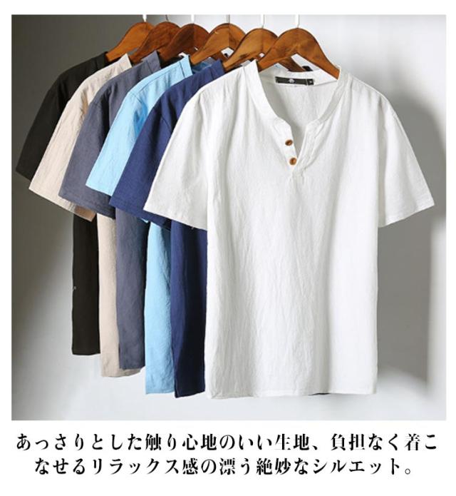 メンズ ヘンリーネックTシャツ 無地 リネンコットン おしゃれ 半袖 Vネック 綿麻 半袖Tシャツ Tシャツ ティーシャツ リネンTシャツ 薄手 夏服 夏物 Tシャツ 黒 白 父の日 大きいサイズ ルームウェア 部屋着