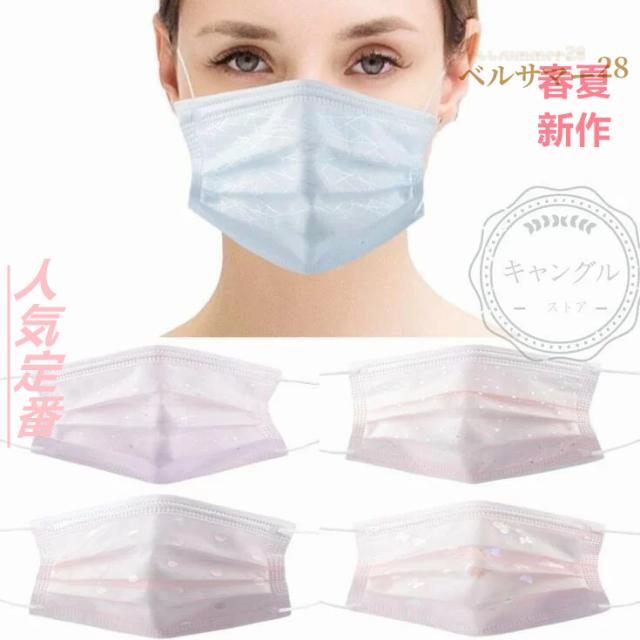 マスク 不織布 50枚 使い捨て 可愛い キラキラ 大人用 3層構造 母の日 父の日 花柄 花粉対策 飛沫防止 風邪 ウイルス対策 春 夏 息がしやすい 耳紐 平紐 平ゴム 耳が痛くない