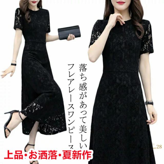 ブラック レース 大人 二次会 通勤 レース 入学式 ワンピースレディースファッション ワンピース