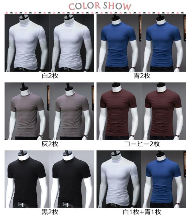 【2枚セット】ゴルフウェア ゴルフtシャツ 3cmモックネック メンズtシャツ モックネックシャツ メンズ ハイネック Tシャツ 半袖 ストレッチ 無地 父の日 ハイネックtシャツ トップス カットソー スポーツウェア