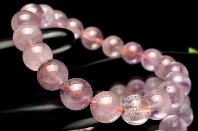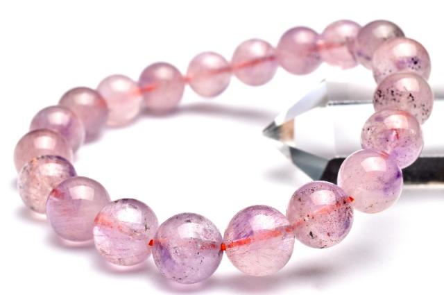 【1点物】高品質◇華やか ピンクスーパーセブンアメジスト 9.5mm ブレスレット 金運・仕事運【ネコポス送料無料】_L3590