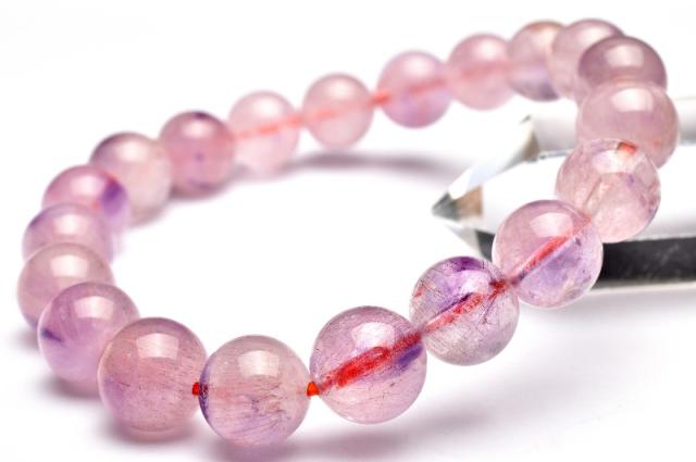 【1点物】高品質◇華やか ピンクスーパーセブンアメジスト 9.5mm ブレスレット 金運・仕事運【ネコポス送料無料】_L3591